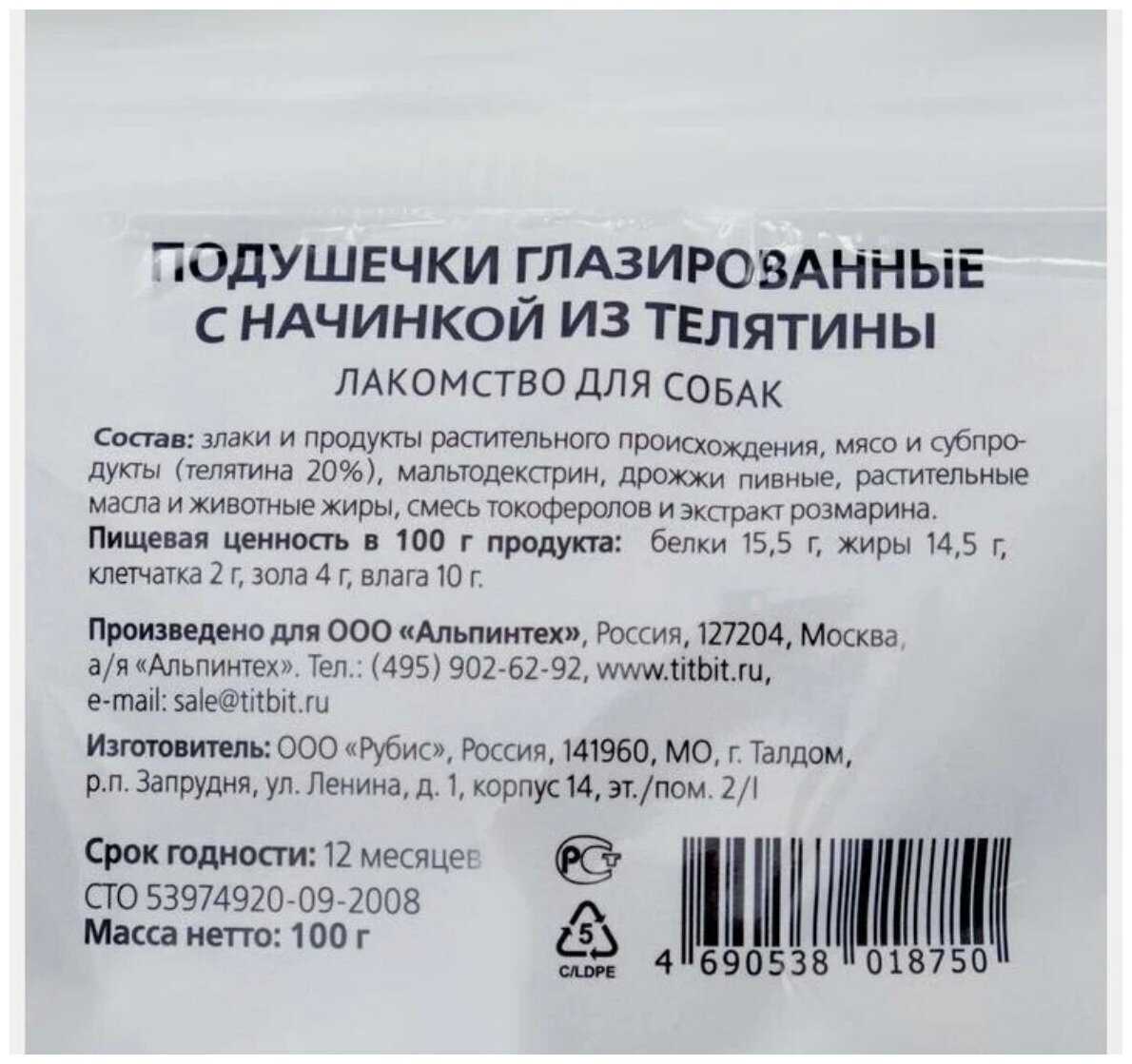 24 отзывов пользователей o Titbit Подушечки глазированные с начинкой из телятины (Золотая коллекция)