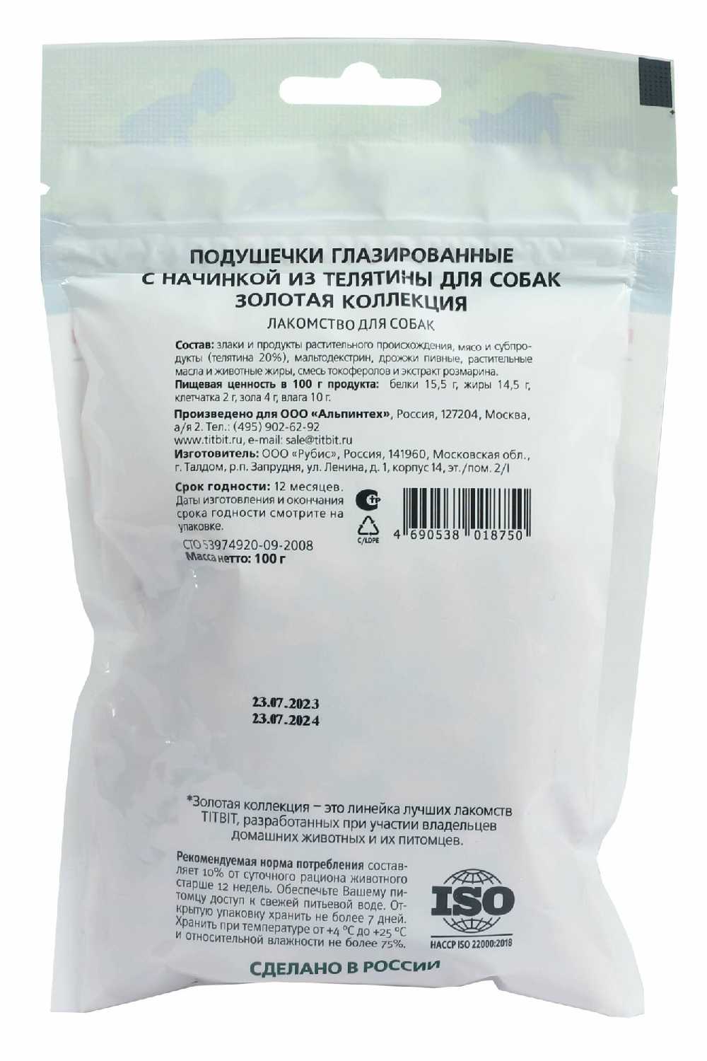 Характеристи Titbit Подушечки глазированные с начинкой из телятины (Золотая коллекция)