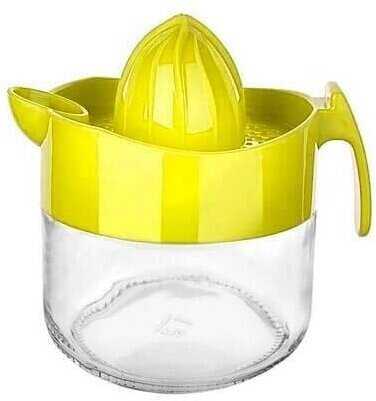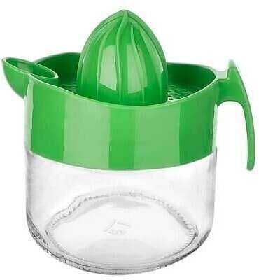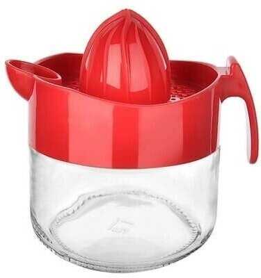 Покупка понравилась. Пластик плотный, глянцевй, хорошего качества. Немного переживала, что контейнер из стекла (иногда что-то роняю), но проверила и убедилась, что размер насадки совпадает с обычными крышками, так что можно использовать стандартные баночки. Отжимает лимоны и не очень крупные апельсины хорошо.