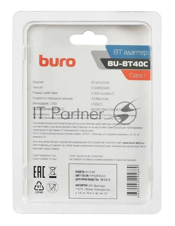 Buro BU-BT30 Bluetooth 3.0+EDR class 2 10м черный