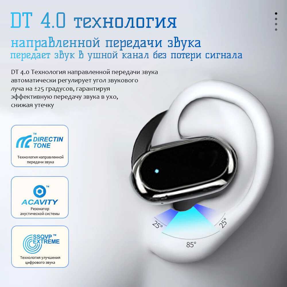 Эргономика, удобство ношения и целевые сценарии использования: Конструкция наушников с заушным креплением и открытыми акустическими элементами разработана для длительного комфортного ношения без контакта с ушным каналом. Регулируемая дужка, состоящая из комбинации пластикового шарнирного механизма и силиконовой гибкой части, позволяет точно подогнать посадку под анатомические особенности любой ушной раковины, включая асимметричные уши. Мягкий силиконовый заушник эффективно распределяет давление и не натирает кожу даже при активном движении. Многие пользователи отмечают, что через 1-2 часа после надевания они перестают ощущать наушники физически, что позволяет использовать их непрерывно в течение всего рабочего дня. Модель позиционируется и успешно тестируется пользователями для активных занятий спортом, в частности, для бега. Ключевым преимуществом является стабильность фиксации — наушники не слетают при интенсивном движении, потрясках и обильном потоотделении, в отличие от многих внутриканальных моделей, выпадающих из размягченных влагой ушей. Открытая конструкция обеспечивает необходимую вентиляцию и гигиеничность, исключая накопление влаги и пота в ушной раковине. Идеальными сценариями использования, помимо спорта, являются монофоническое прослушивание уведомлений и звонков в течение дня, длительные телефонные разговоры, работа за компьютером и просмотр видео в помещении. Модель обеспечивает постоянную осведомленность об окружающей обстановке (позволяет слышать коллег, транспорт, сигналы), что критически важно для безопасности на улице и в офисе.