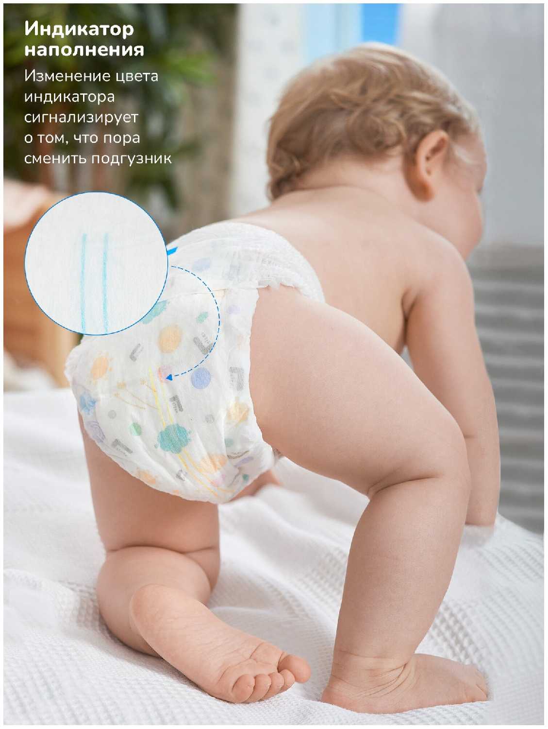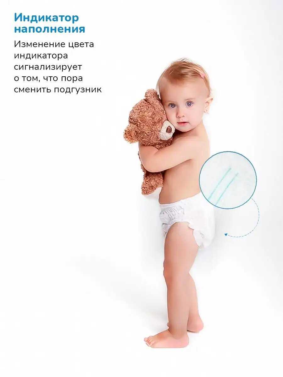 - Подгузники надежно удерживают жидкость даже при активном движении ребенка, предотвращая протекания в течение 3 часов и более.