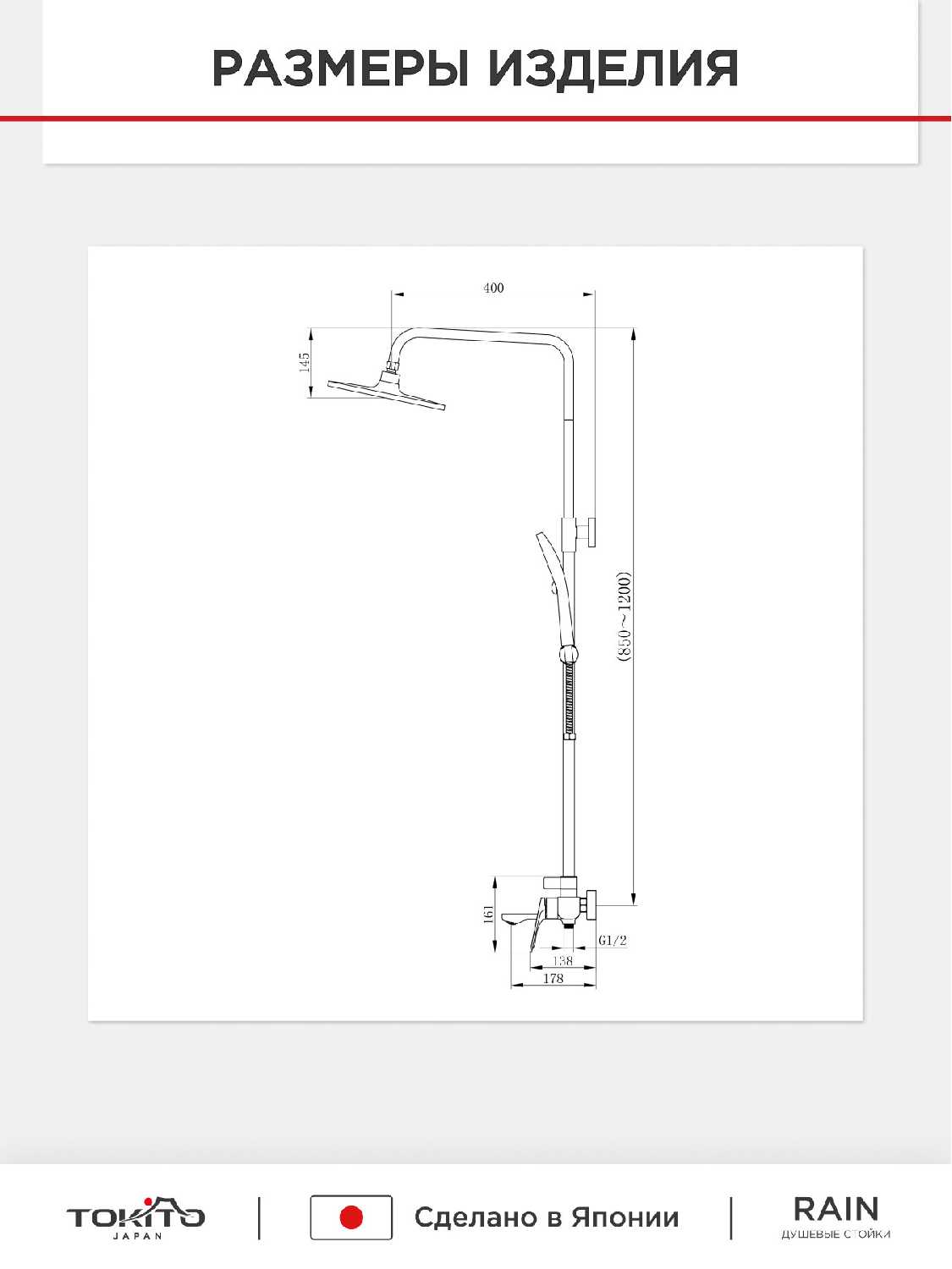 Высота стойки для душа : | 850 мм |