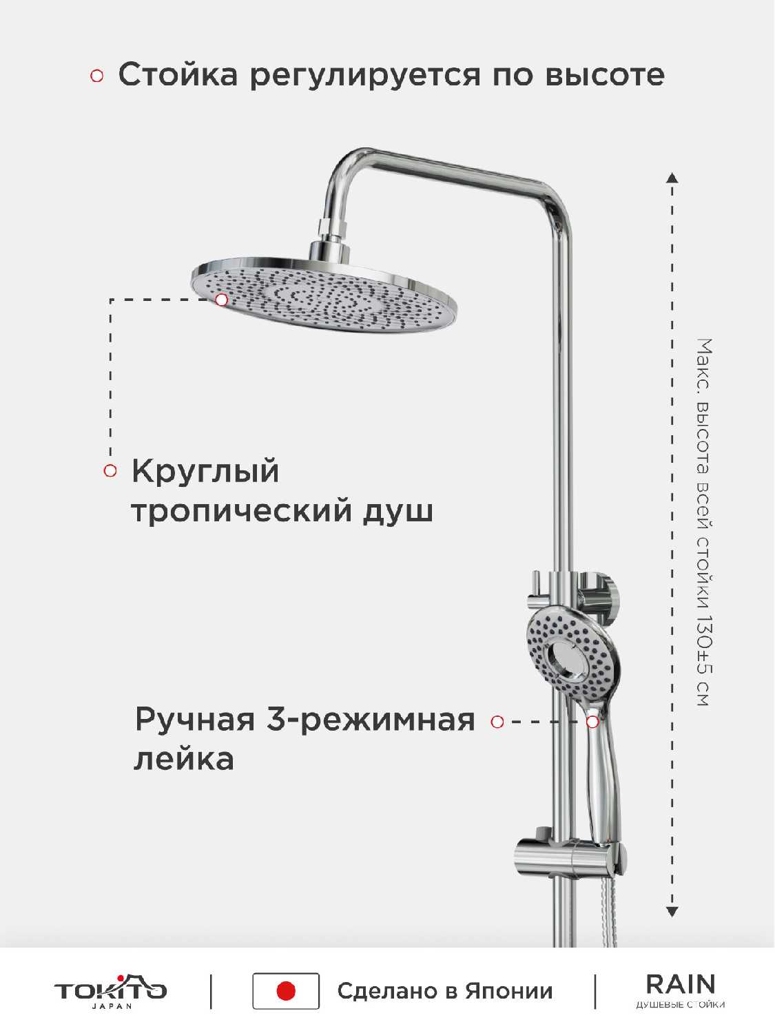 Характеристи Tokito Душевая стойка с поворотным смесителем TOKITO
