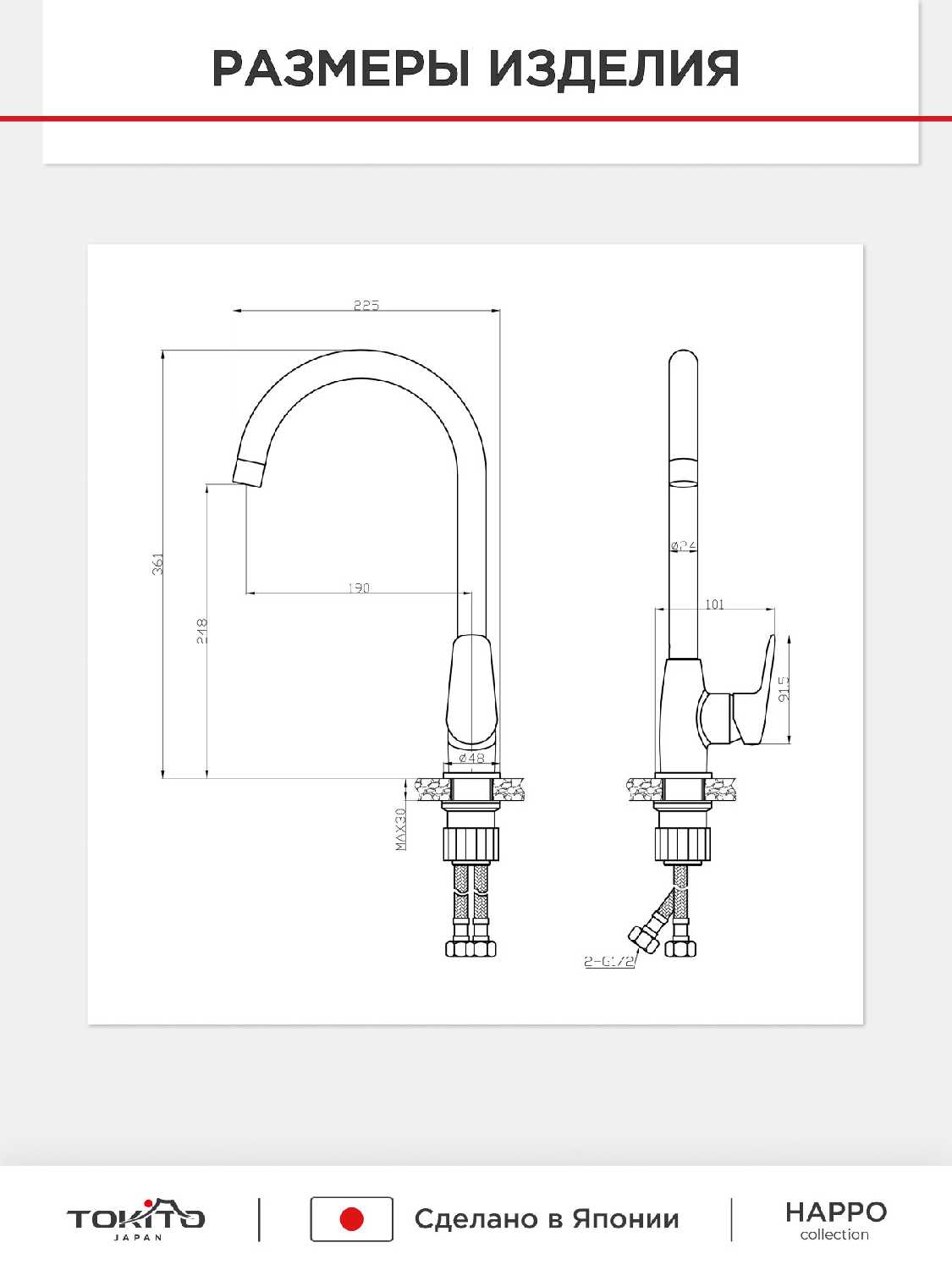 напор хороший, не брызгает, в сезон отключения горячей воды удобно подключать проточный водонагреватель, высота позволяет и ге мешает мыть посуду.
