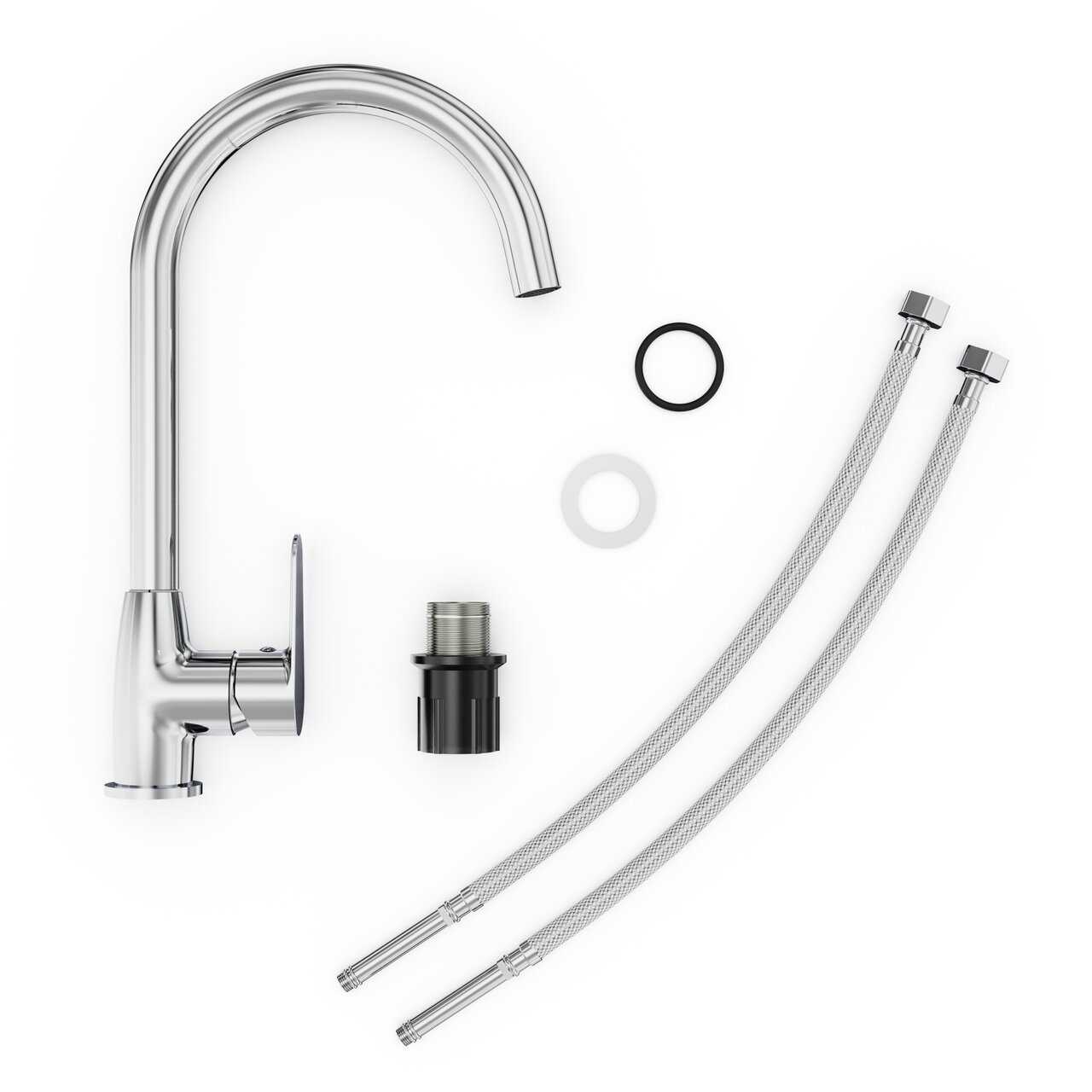 Хороший высокий кран, короткая подводка, пришлось докупить отдельно