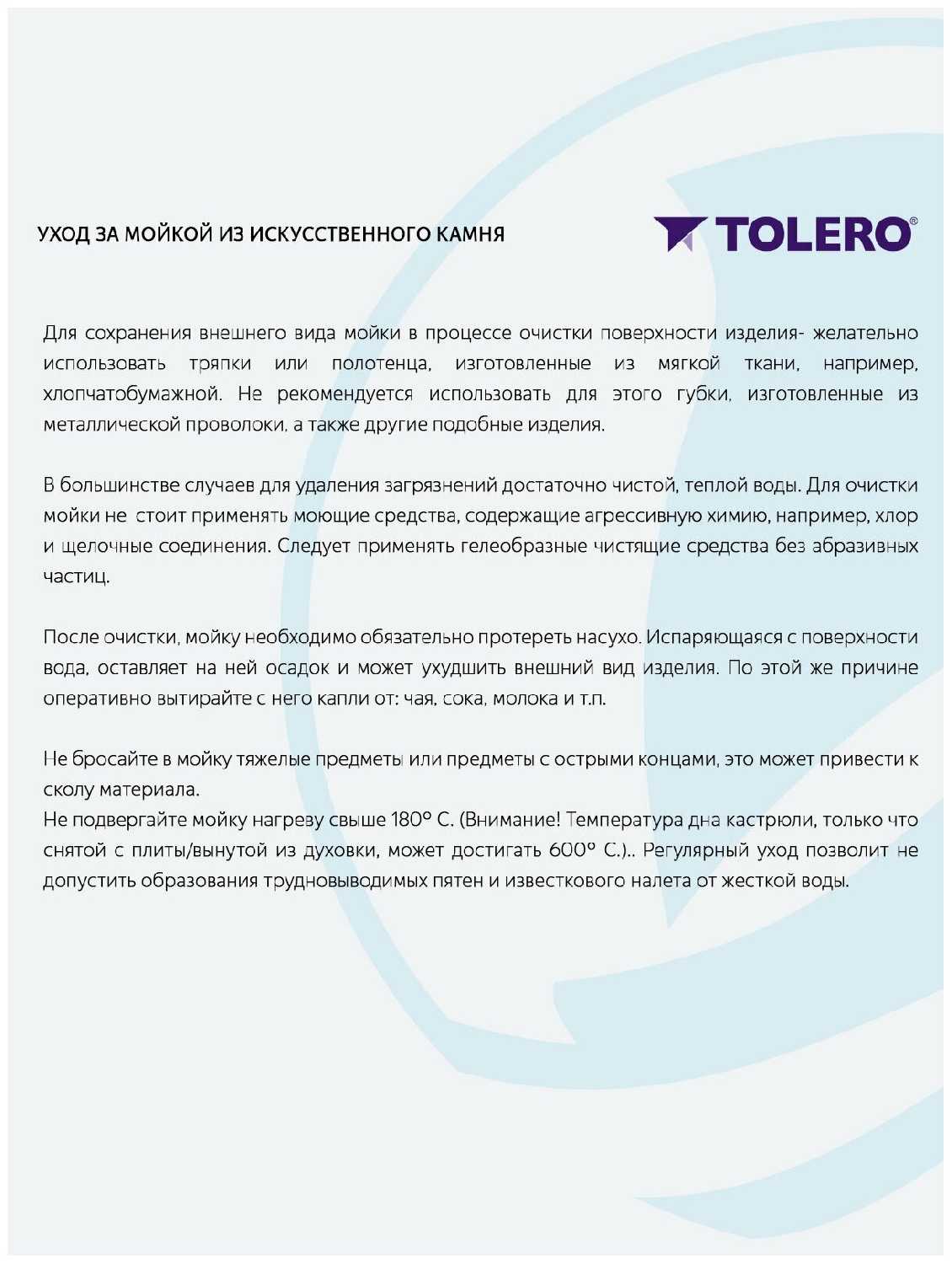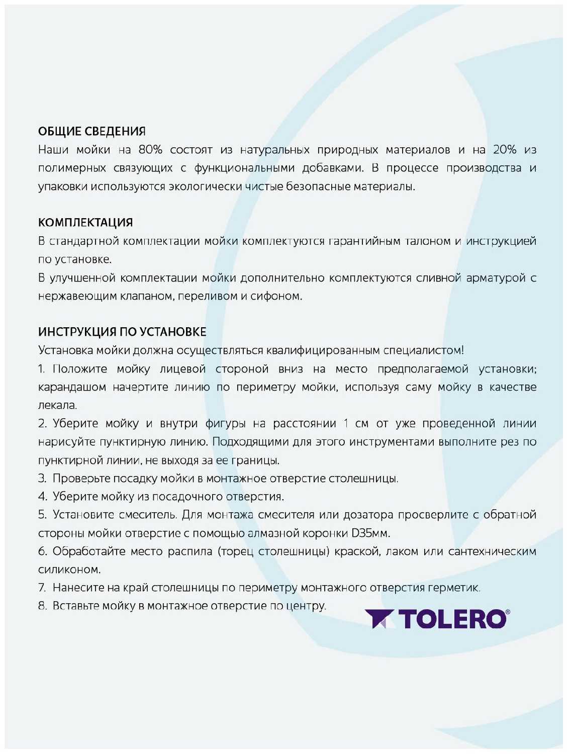 5 отзывов пользователей o Tolero Мойка кухонная R-117 Белый 923
