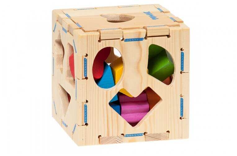 - - На сортере указано 3+ - в три года он уже будет неинтересен. Качество обработки деталей соответствует цене. Имеются сложные фигуры, которые даже взрослый незнает как назвать ("половинка знака плюс"), но нет простейшей - круга.
