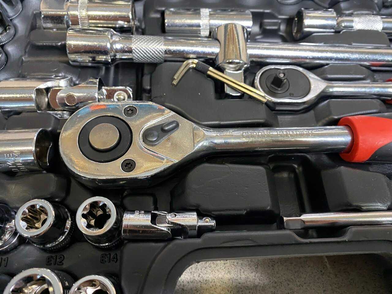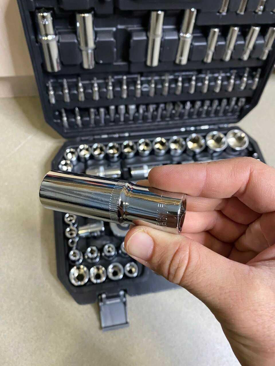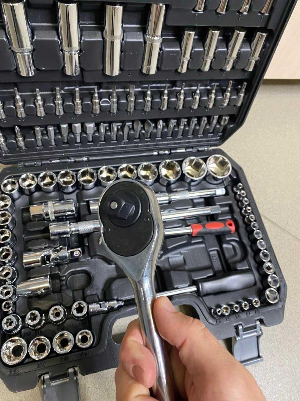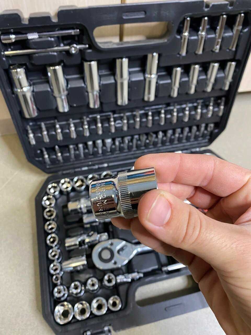 - - Ящик сделан таким образом что его можно случайно открыть вверх ногами изза чего все головки разлетятся кто куда, замки можно было сдвинуть и тогда его не выйдет открыть не той стороной. Качество металла вызывает большие сомнения, хватило 1 раза поковырятся в снегу и почти весь набор пошел цвести, трещетки при всем при этом схватились так что пользоваться нормально не получается, придется уже чистить от ржавчины, да и прочность какая то не впечатляющая, удлинители умудрился погнуть довольно легко