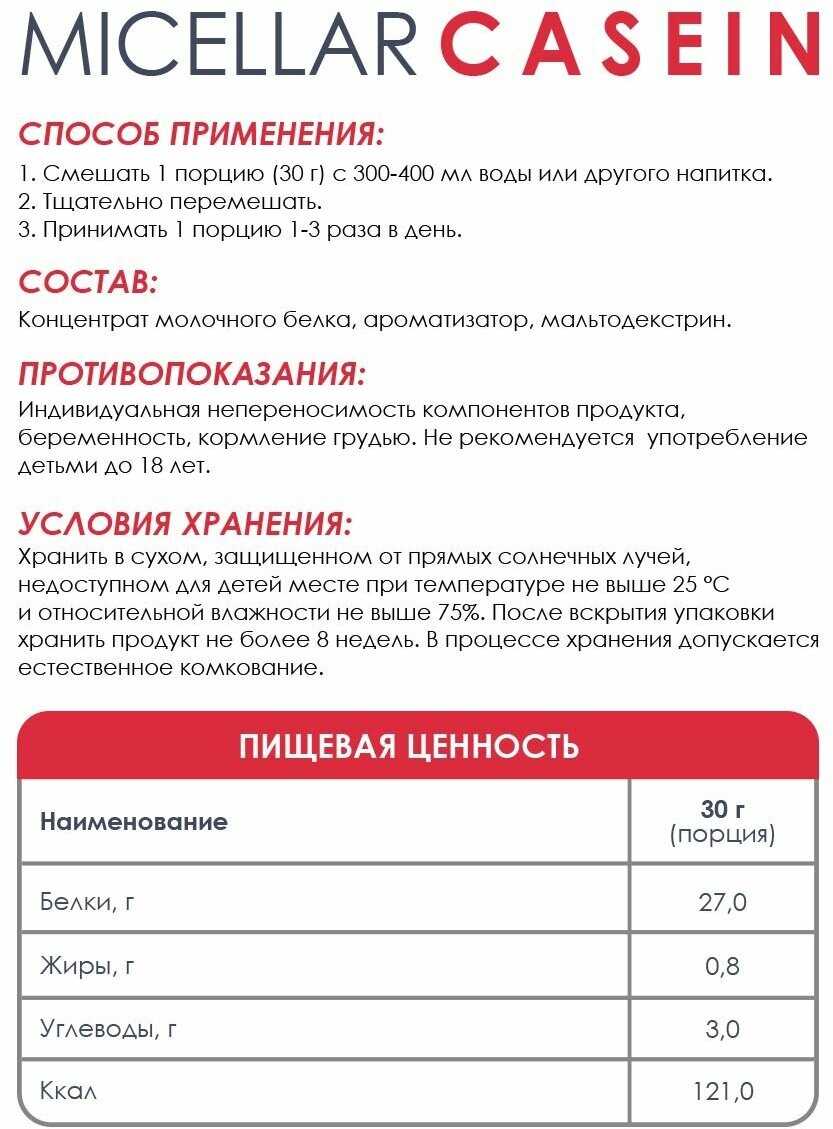 Дополнительная информация : | размер порции в г(мл): 30, состав: Концентрат молочного белка |