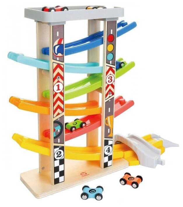 | Дополнительная информация : | горка с машинками доставляется в картонной коробке в собранном виде нужно будет поставить только 2 платформы, трек игрушка в сборе высотой 41 см размеры машинок - высота 15 мм ширина 30 мм длина 45 мм |