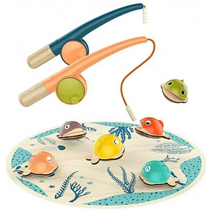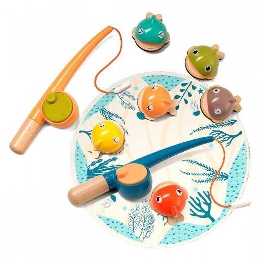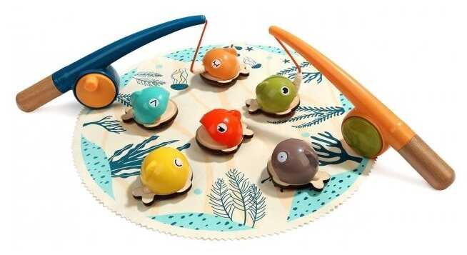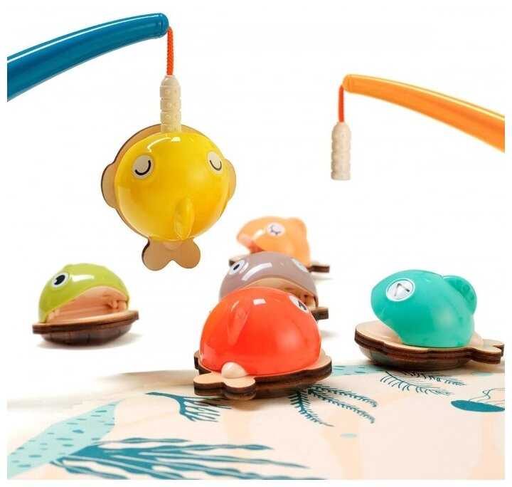 Комплектация : | 2 удочки с магнитами, 6 различных объемных рыбок, тканевый коврик |