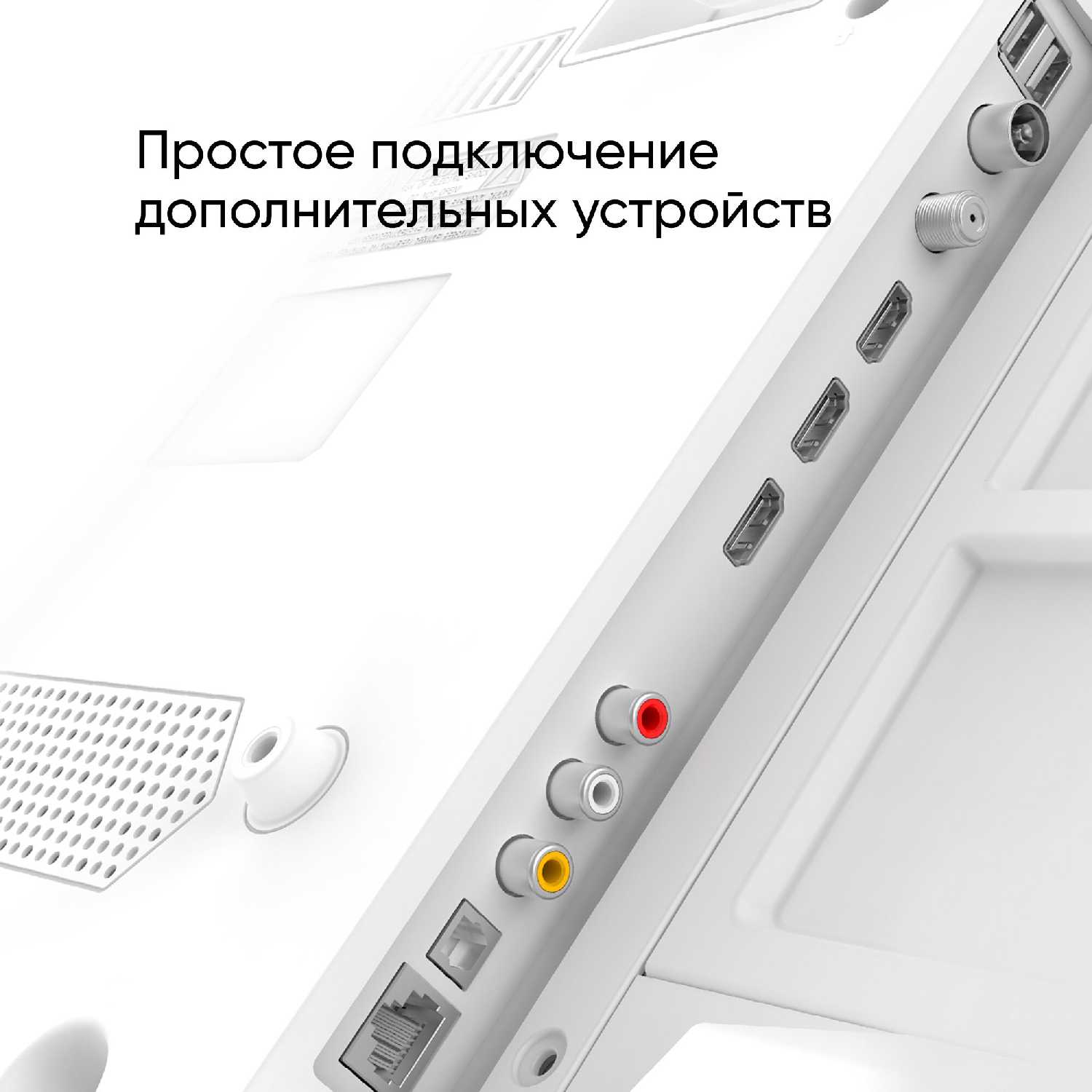 - Встроенные динамики мощностью 20 Вт обеспечивают четкое воспроизведение диалогов и музыки без подключения внешней акустики.