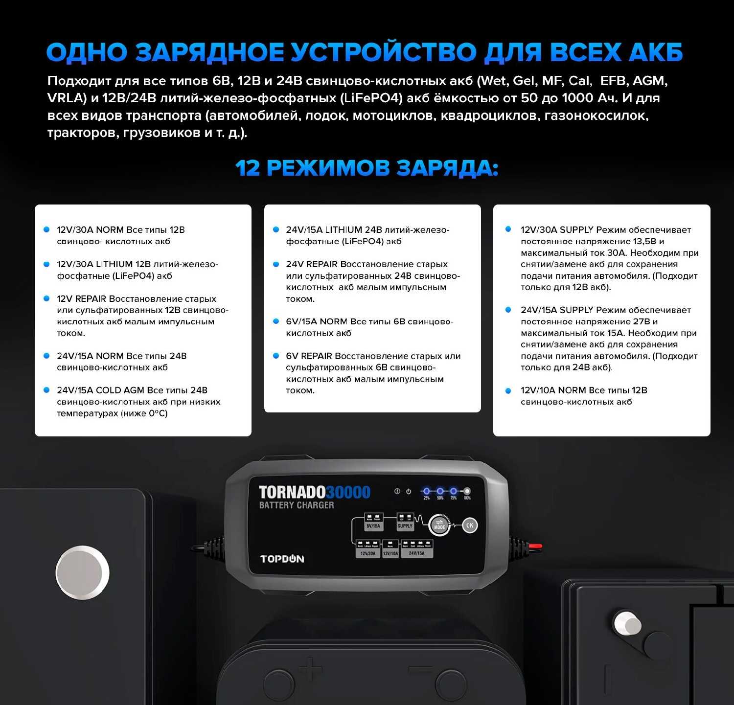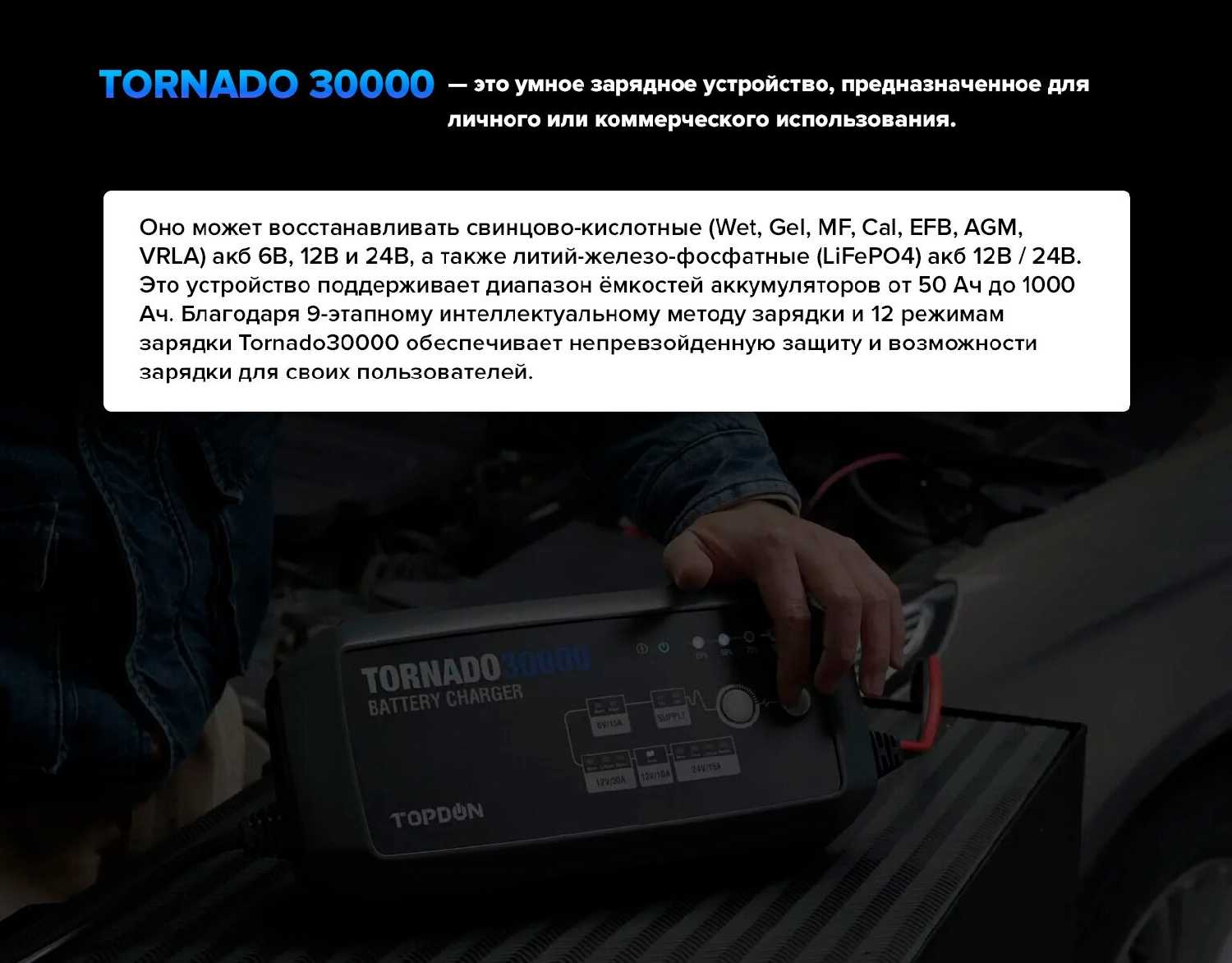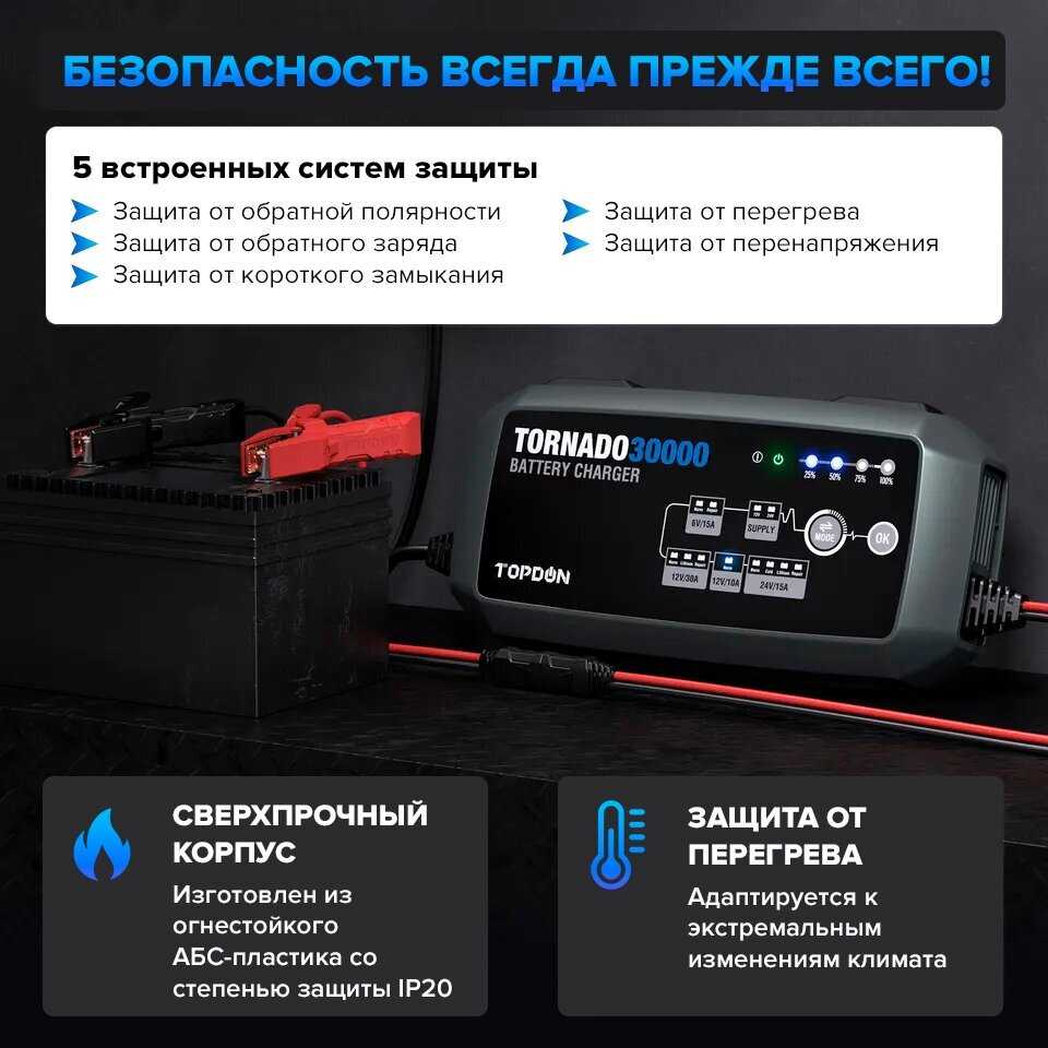 Отзывы о Умное зарядное устройство TOPDON Tornado30000