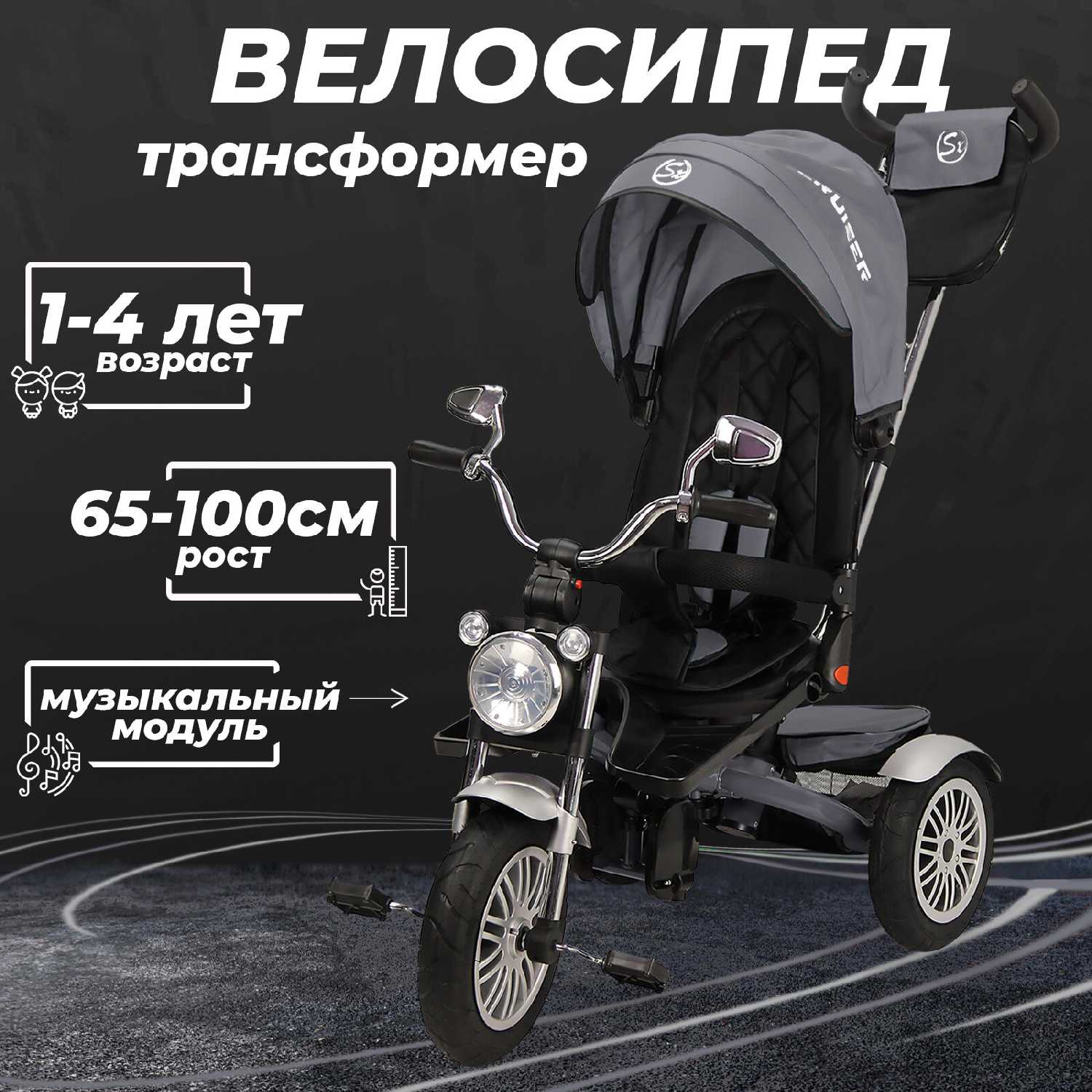| Особенности : | задние крылья, переднее крыло, подставки для ног, регулировка сиденья, регулируемый подъем руля, сиденье со спинкой |