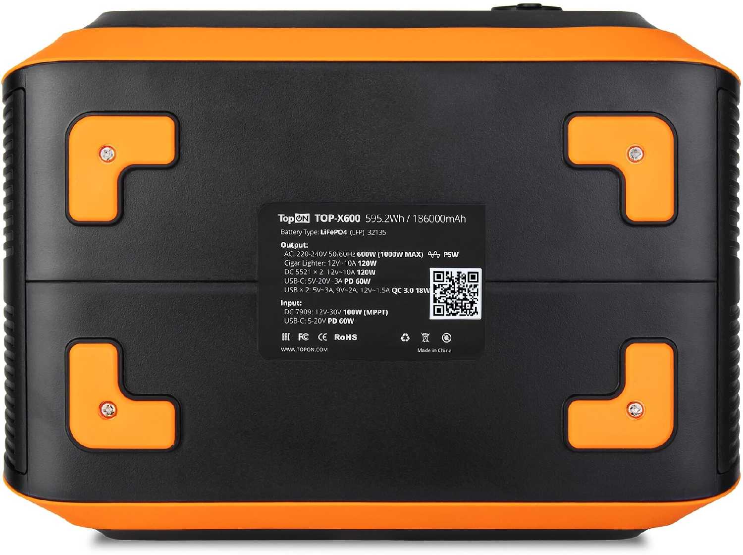 Портативная электростанция TopON TOP-X600 LFP 600 Вт, розетка 220 В, авторозетка 12 В, 2 DC, Type-C, 2 USB, фонарь