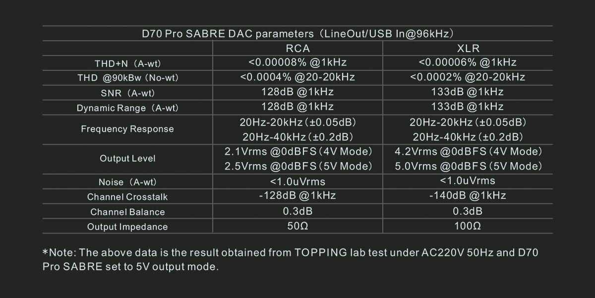 ▪️ SNR: RCA : 128dB @ 1kHz A-Weighted/ XLR : 133dB @ 1kHz A-Weighted