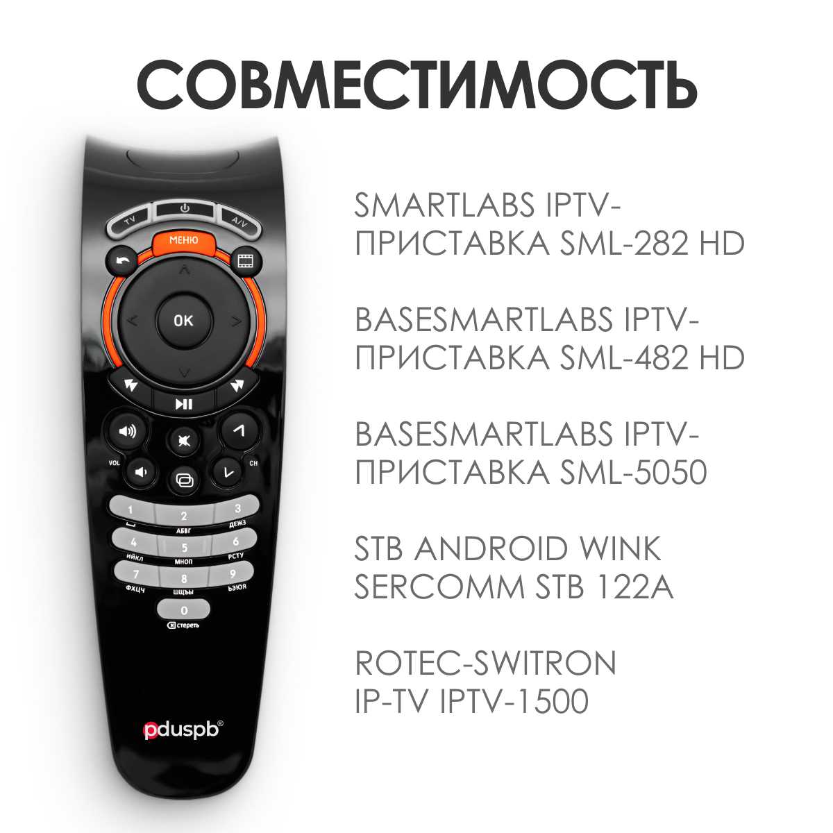 Назначение : | Совместимые модели телевизоров: SmartLabs IPTV-приставка SML-282 HD BaseSmartLabs IPTV-приставка SML-482 HD BaseSmartLabs IPTV-приставка SML-5050 STB Android Ростелеком Wink Sercomm STB 122A Ростелеком (Rostelecom) ROTEK-SWITRON IP-TV IPTV-1500 |
