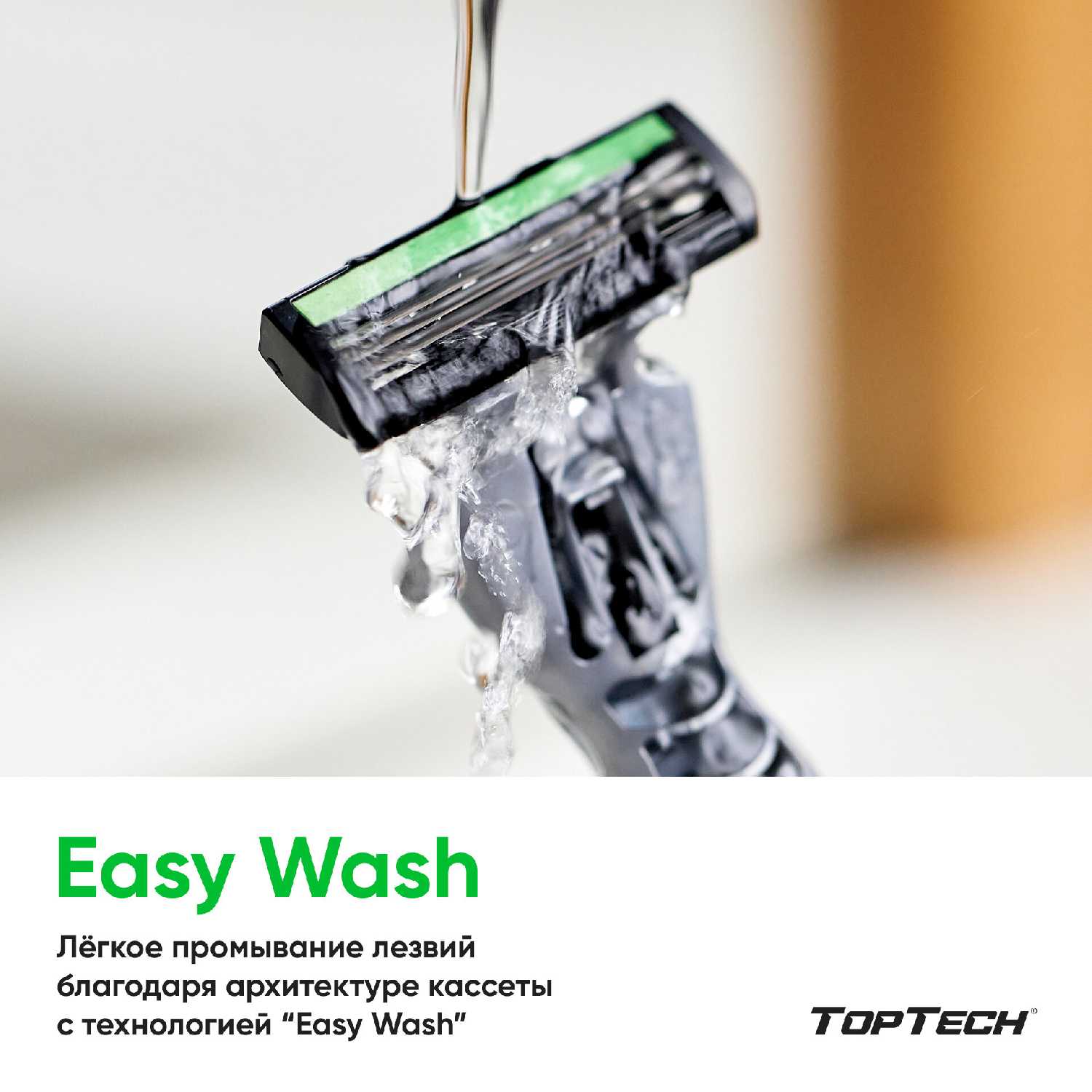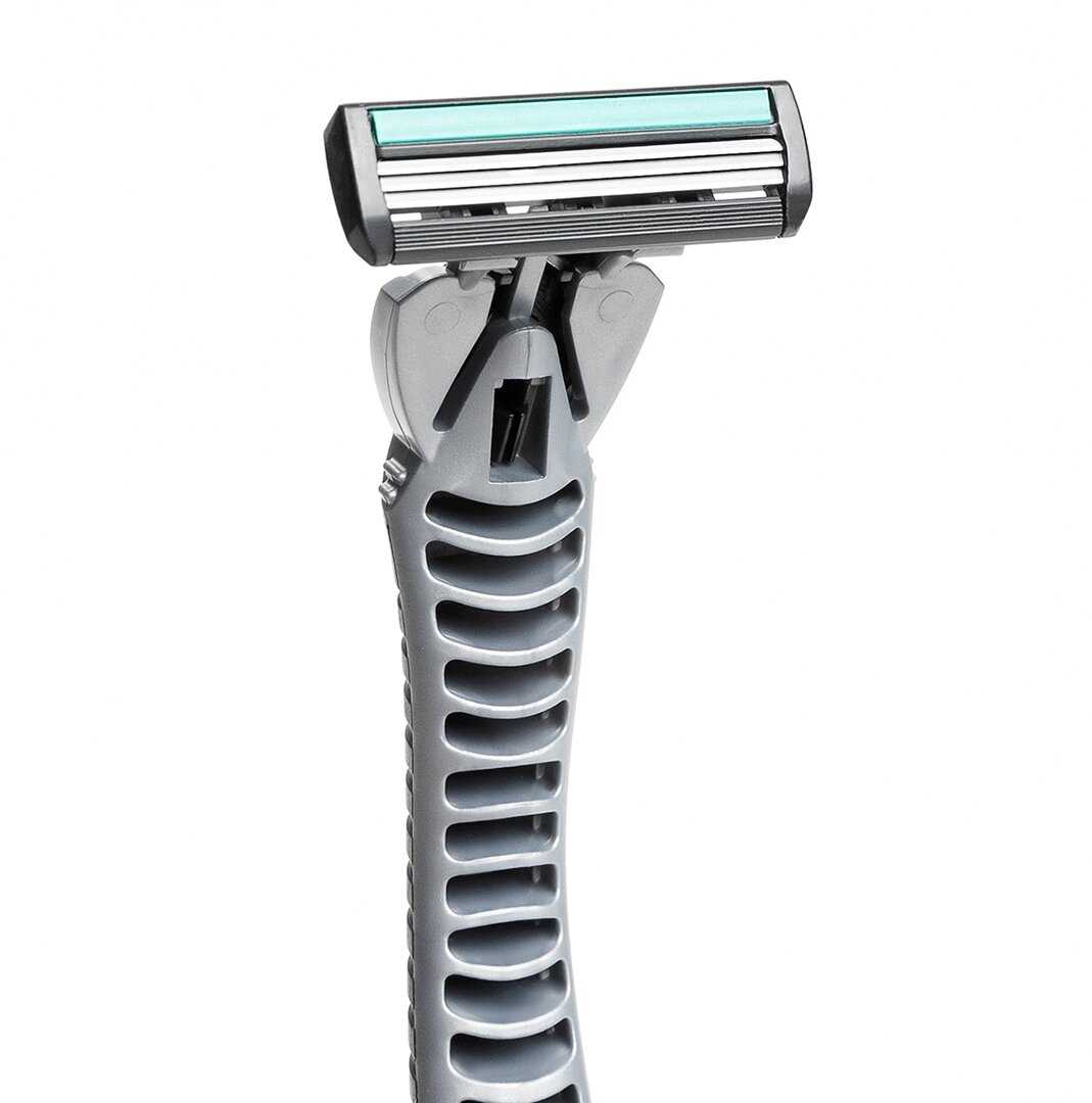 - Три лезвия в кассете срезают волоски под корень за один проход, минимизируя повторные движения и повышая эффективность для ежедневного использования.