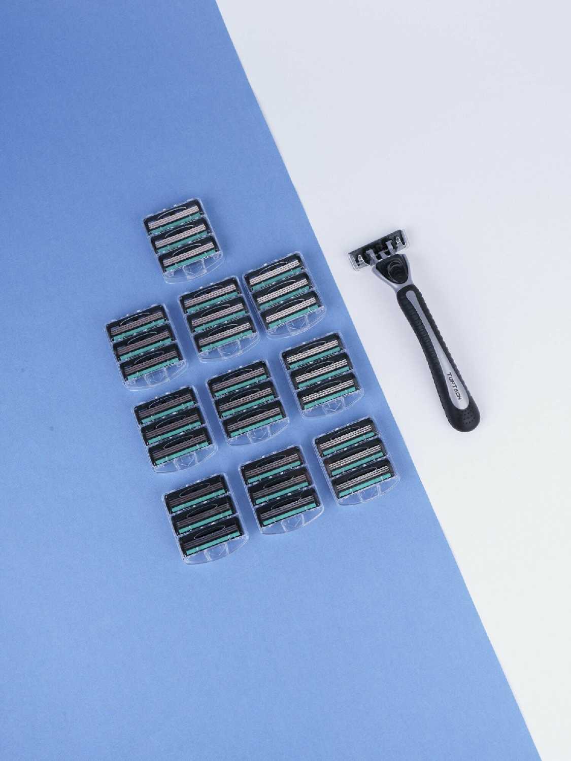 - Угол установки лезвий в станке соответствует оригинальным, позволяя использовать проверенные кассеты для улучшенного качества бритья.