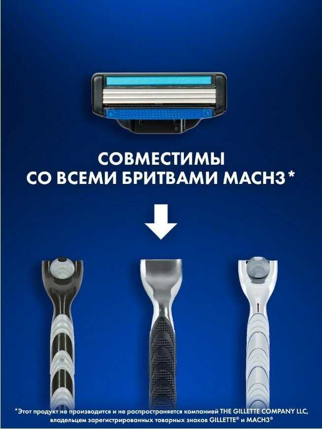 Дополнительная информация : | Сменные кассеты совместимы с бритвами Gillette Mach3* и Mach3 Turbo* *Этот продукт не производится и не распространяется компанией THE GILLETTE COMPANY LLC, владельцем зарегистрированных товарных знаков GILLETTE, Fusion и Mach 3 |