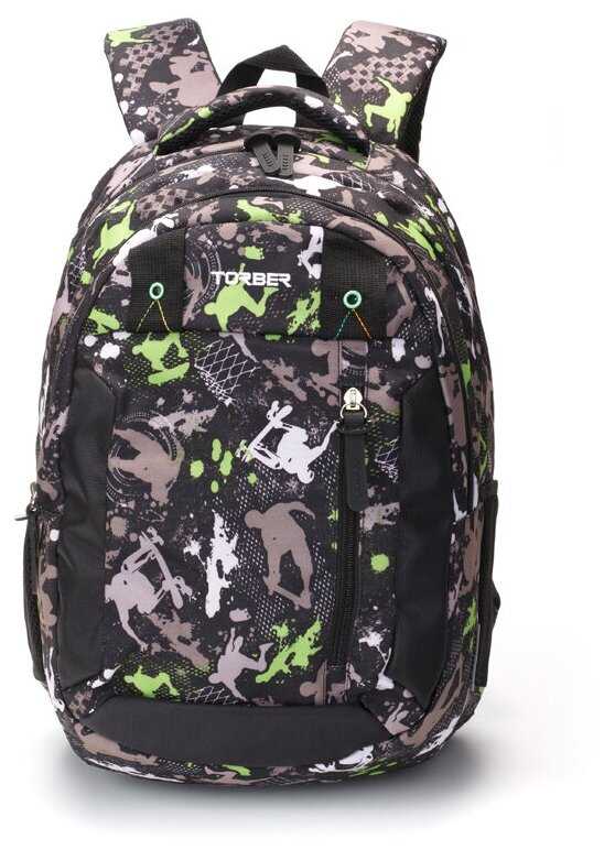Отзывы о Рюкзак TORBER CLASS X, черно-серый с рисунком "Скейтбордисты", полиэстер, 45 x 32 x 16 см TORBER MR-T5220-BLK-GRE