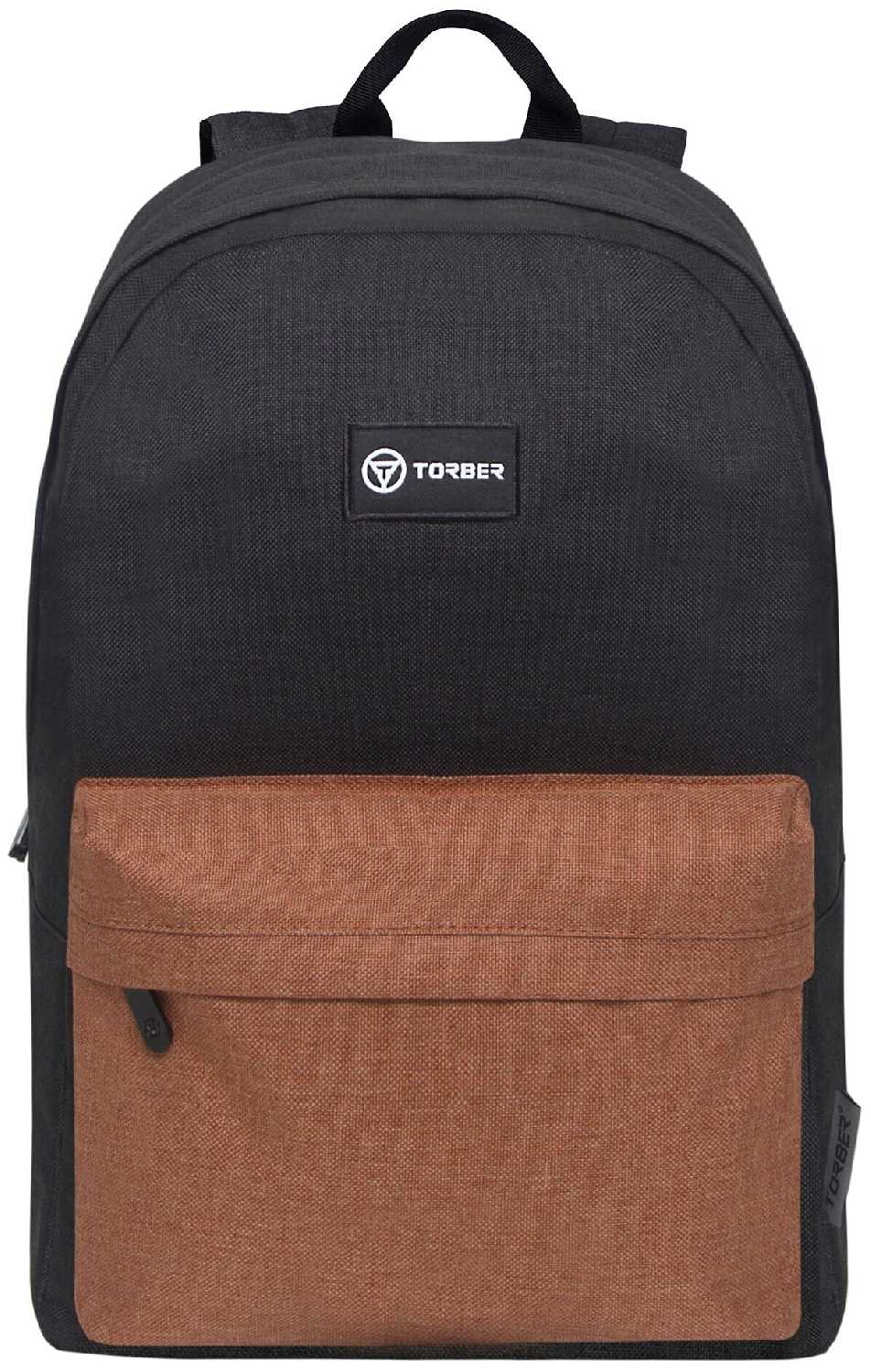 Отзывы о Рюкзак TORBER GRAFFI, черный с карманом коричневого цвета, полиэстер меланж, 42 х 29 x 19 см TORBER MR-T8965-BLK-BRW
