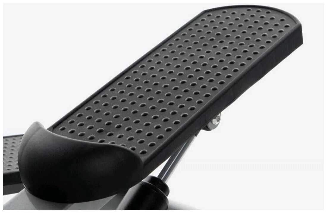 - + Очень лёгкий,а главное компактный.Удобные эспандеры для рук,можно отстегуть.Довольно информативный дисплей,показывает количество двойных шагов,сожжённые килокалории,время тренировки.Резиновые накладки-поскользнуться невозможно.Устойчив.Возможность регулировки усилия нажима.