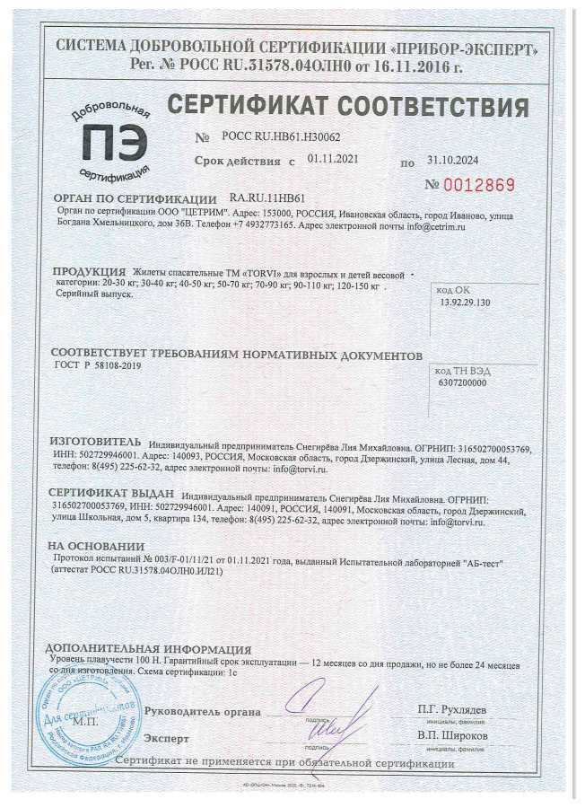 Отзывы о "Жилет спасательный ТМ "TORVI" 120-150 кг