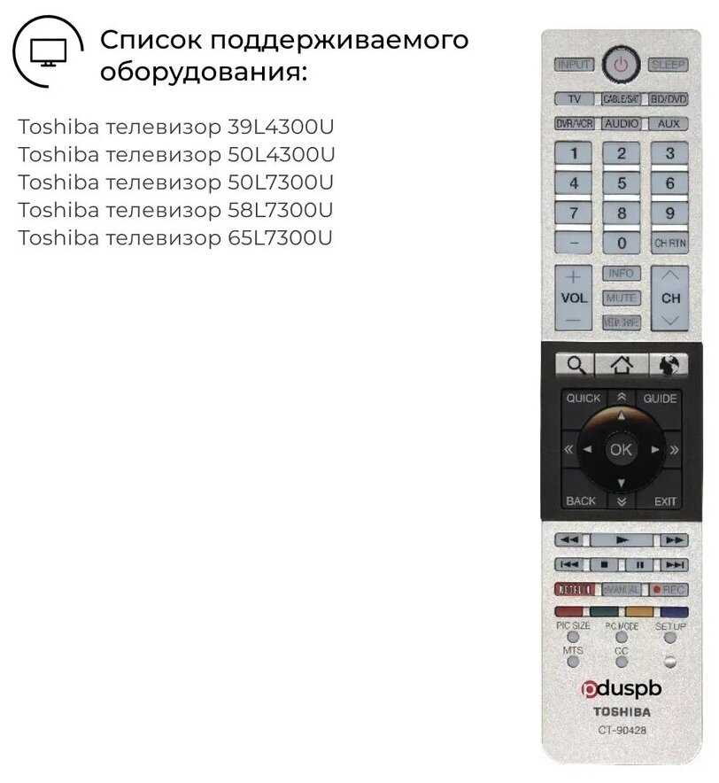 | Назначение : | Toshiba 39L4300U, Toshiba 50L4300U, Toshiba 50L7300U, Toshiba 58L7300U, Toshiba 65L7300U |