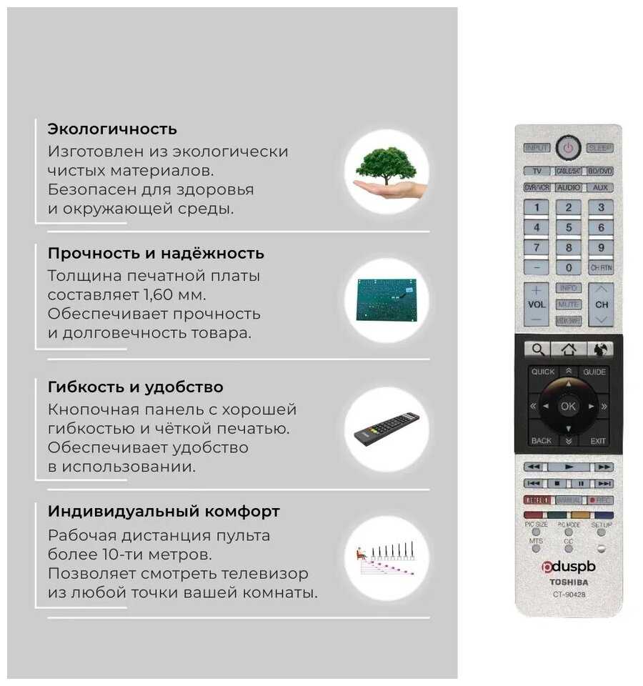 | Дополнительная информация : | Внимание! Данный пульт CT-90428 не универсальный. Он совместим только с телевизорами из списка поддерживаемого оборудования! Подробный список поддерживаемого оборудования смотрите в «Назначении». Для Вашего удобства мы также добавили инструкции по подборке пультов. Пожалуйста, ознакомьтесь с ними перед покупкой. Можете задавать вопросы, мы незамедлительно поможем подобрать пульт для Вашего ТВ. |