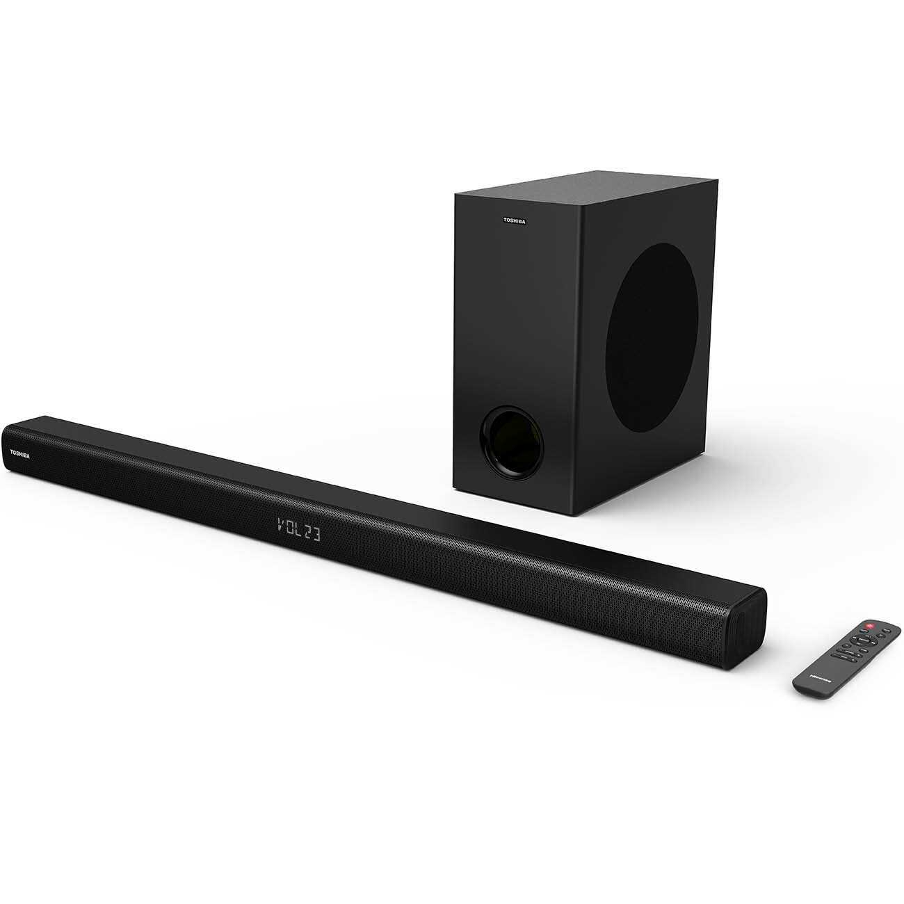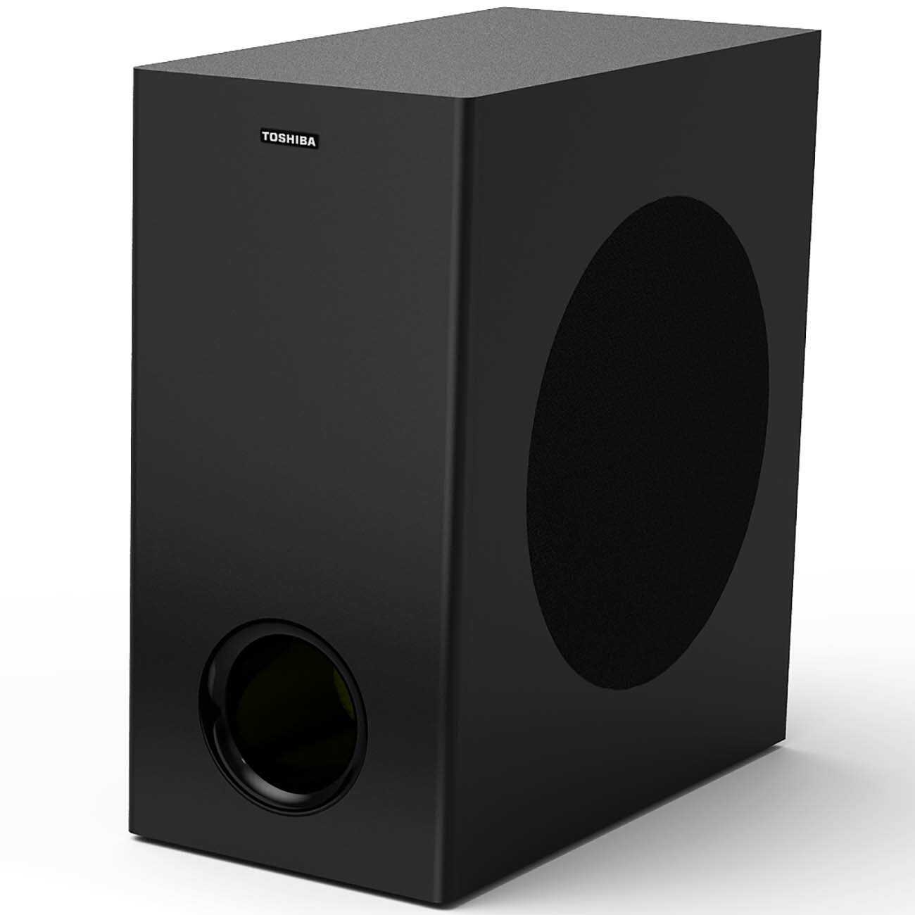- + Саундбар Toshiba TS218 оснащен 4 динамиками и беспроводным сабвуфером, которые обеспечивают вам в общей сложности 200 Вт превосходного звука.