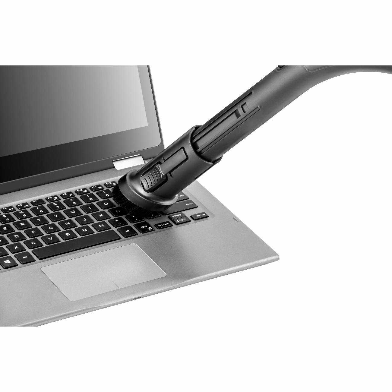 - Встроенная щелевая насадка на ручке обеспечивает доступ в узкие пространства (углы, плинтусы) без смены аксессуаров.