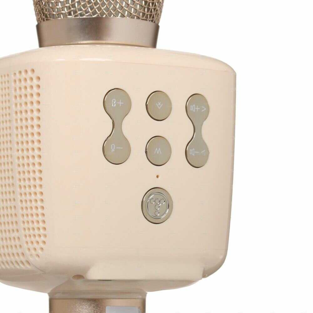 Для караоке не подходит, фонит звук на телевизор по блютуз не передаёт. Работает в качестве колонки, которая воспроизводит звук с телефона или телевизора и тут же твои голос. Игрушка детям.