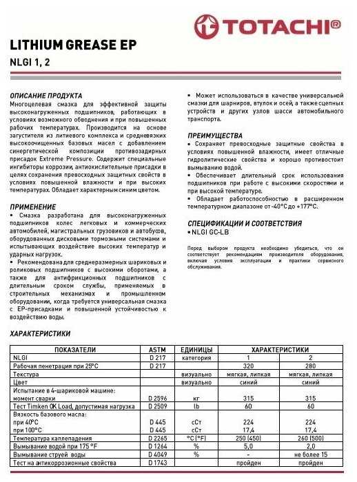 6 отзывов пользователей o TOTACHI Lithium Grease EP-2