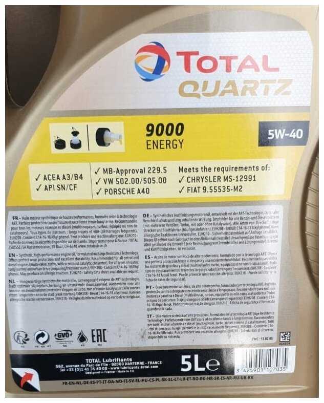 Характеристи TOTAL Quartz 9000 Energy 5W-40
