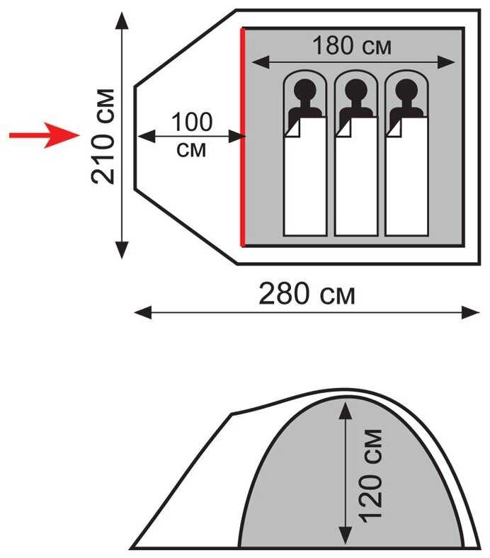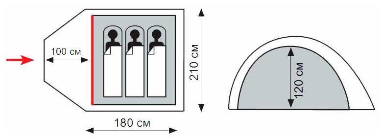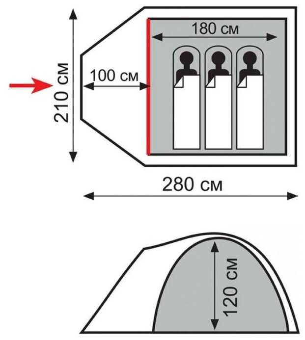Учитывайте, что 3-хместная она только для 3 китайцев, что её проектировали. Я с ростом 186 в длину в ней не могу растянуться. Голова и стопы упираются в свисающие стенки. В высоту она тоже для меня низковата, только в центре палатки головой не цепляю ничего