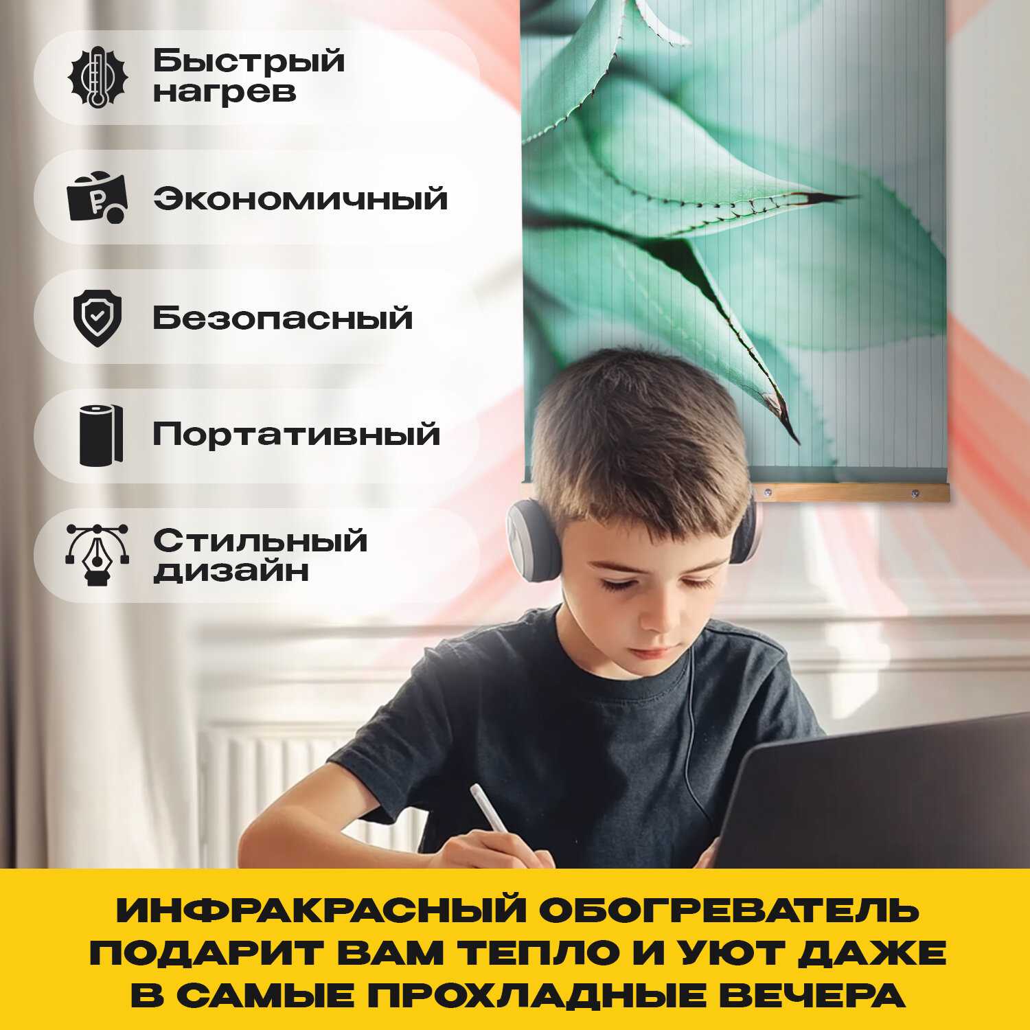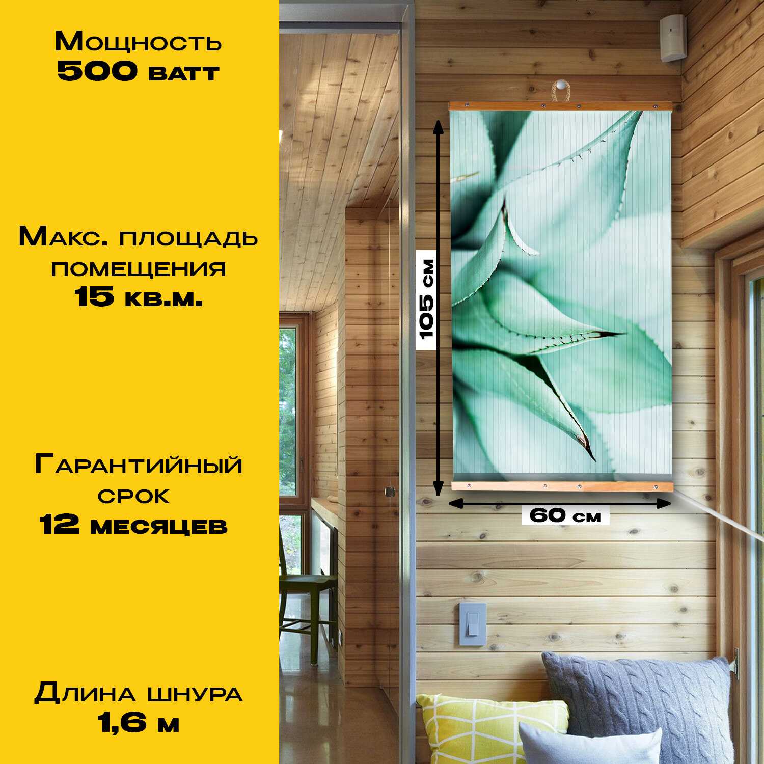 - Равномерный прогрев по всей площади полотна (размеры 60×100 см и более).