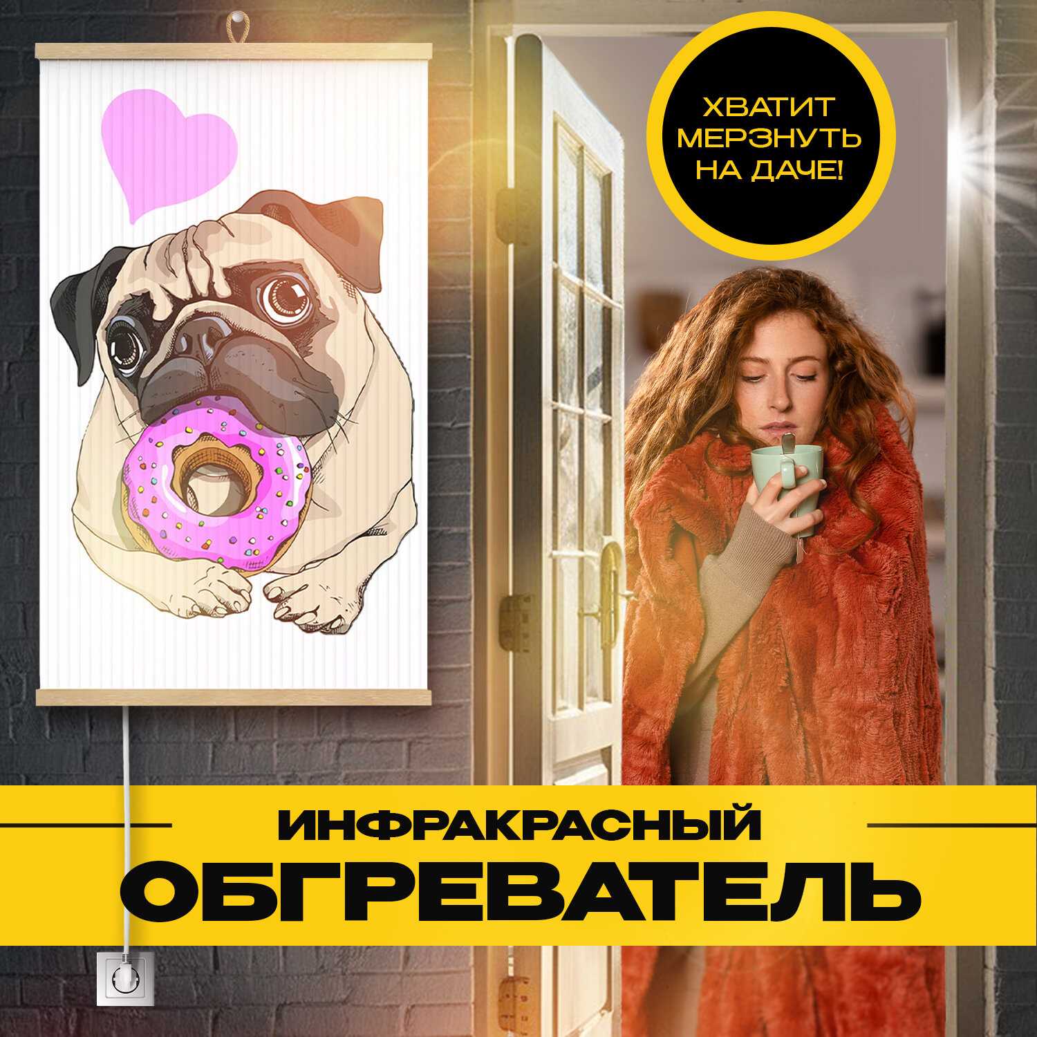 - + цена, легко повесить, включить, очень красивая картина, большой размер, нагревается быстро и долго держит тепло