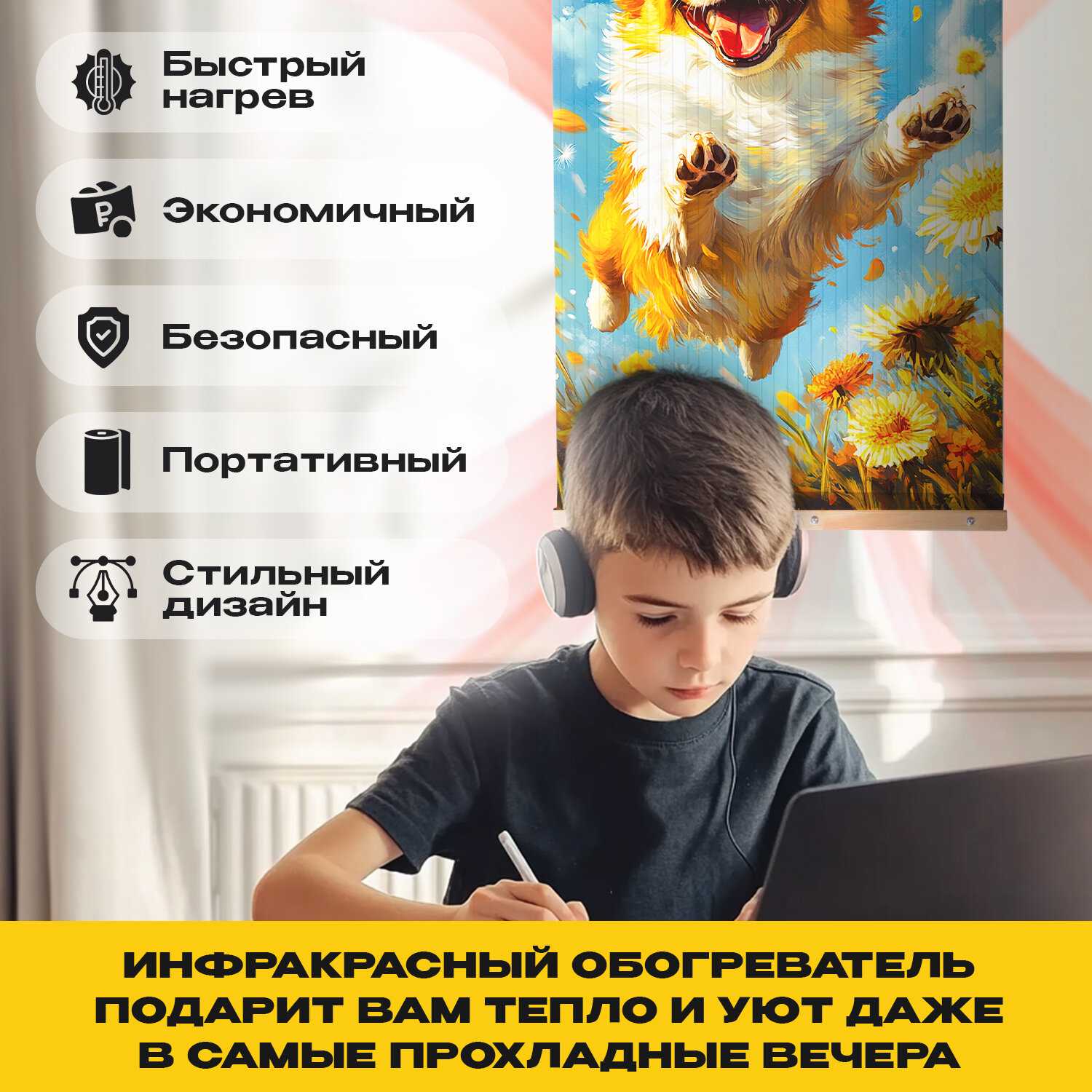 Идеален для точечного тепла: владельцы собак (особенно бесшерстных пород) размещают его рядом с лежанкой, отмечая быстрый комфортный прогрев. Также эффективен для сушки вещей или обогрева рабочего места в мастерской, создавая "теплую зону" без нагрева всего помещения. -