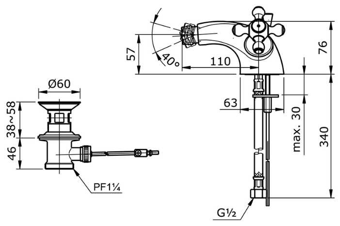 Характеристи TOTO Curio Смеситель для биде, хром