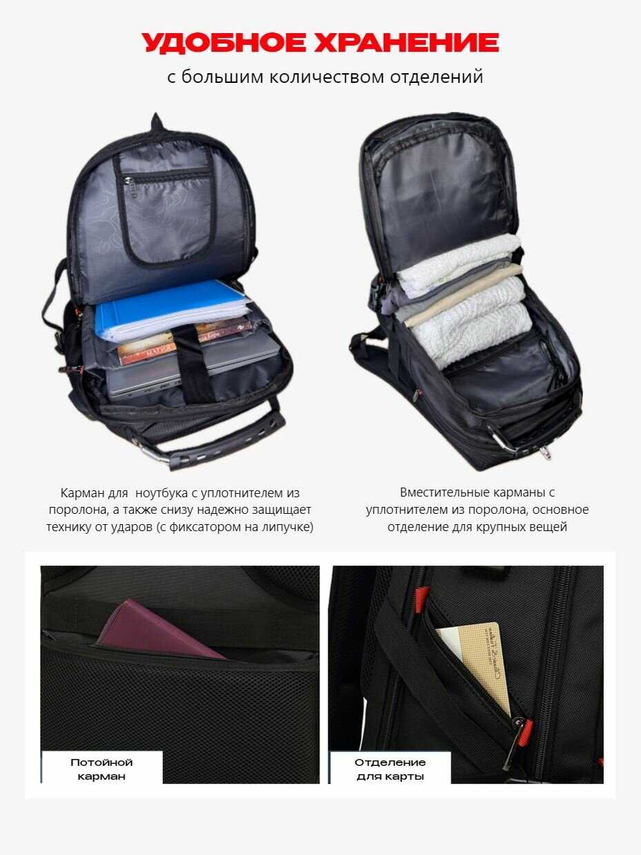 Рюкзак реально большой и удобный для работы. Муж таскает в нём ноутбук, кучу документов, инструменты, провода, зарядки — всё помещается без проблем. Лямки и спинка позволяют носить его долго, спина не устает. Единственное, что стоит учитывать: мелкие вещи иногда теряются внутри, и под сильным дождём лучше использовать чехол. В целом — отличный рюкзак для тех, кому нужен объёмный и прочный вариант для работы.