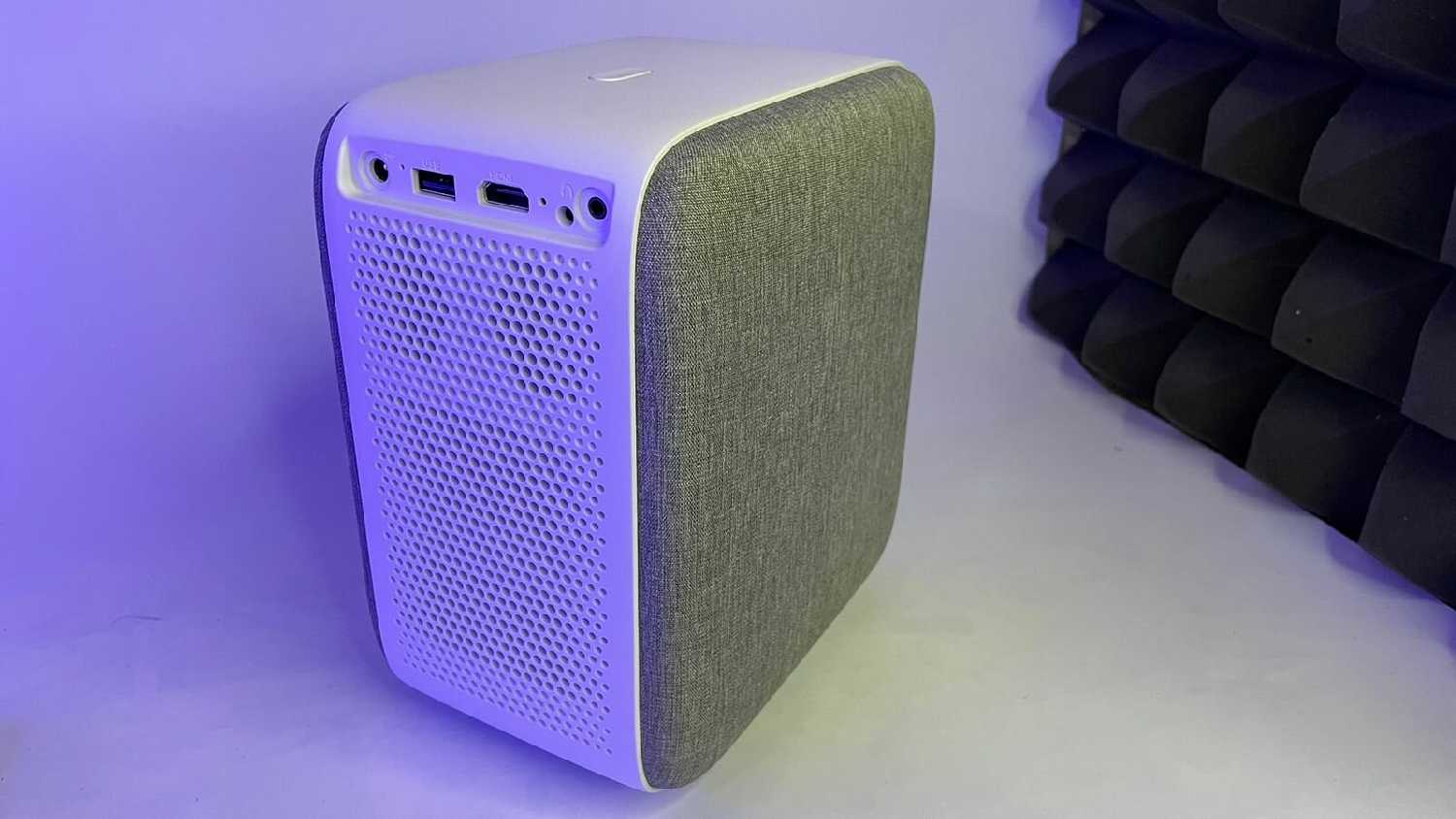 Вентилятор издаёт заметный шум, сравнимый с гулом стационарного ПК под нагрузкой. В тихих сценах фильмов или при просмотре в небольшой комнате это может раздражать. Пользователи рекомендуют маскировать звук внешними колонками или устанавливать проектор за спиной зрителей. На потолочном креплении шум воспринимается менее отчётливо. -