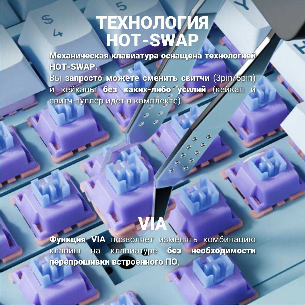 | Комплектация : | клавиатура, руководство пользователя, USB-кабель, USB-ресивер, кейкап/свитч-пуллер, 3 запасных свитча, 2 запасных ножки |