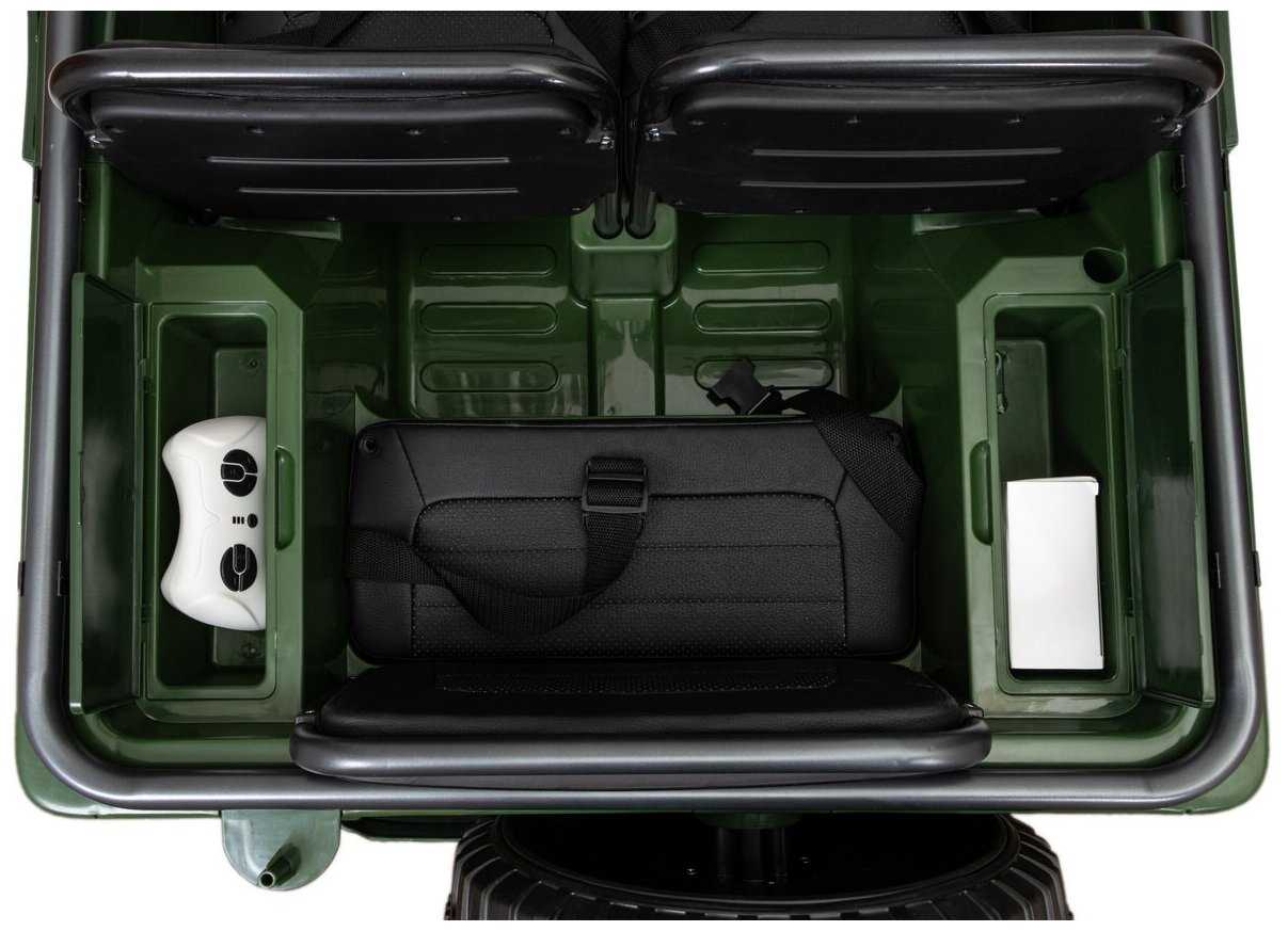 Особенности : | задний ход, индикатор заряда, мягкие накидки на сиденье, на аккумуляторе, открываются дверцы, переключение скоростей, перемещение по принципу "чемодан", плавный ход, радиоуправление, требуется частичная сборка, управление со смартфона/планшета |