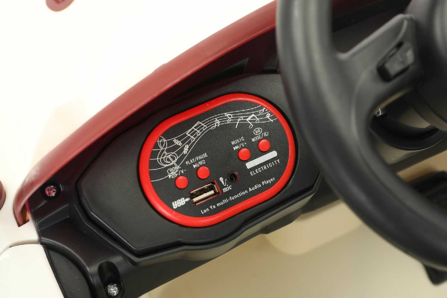 - + Легко собирается, в комплекте имееются все части, в целости и сохранности,фары горят,музыка играет, громко четко