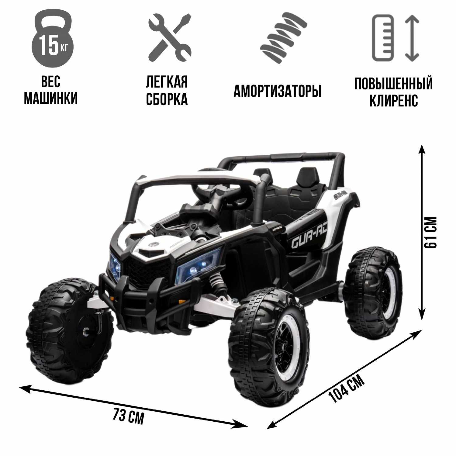 | Особенности : | двухместный, задний ход, индикатор заряда, на аккумуляторе, плавный ход, радиоуправление, требуется частичная сборка |