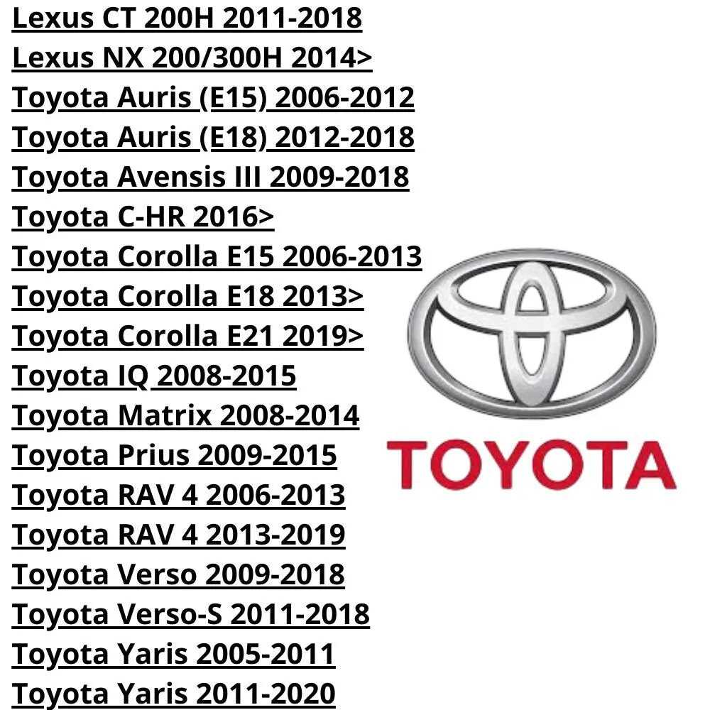 Модель автомобиля : | Toyota 1000, Toyota Allex, Toyota Alphard, Toyota Aristo, Toyota Auris, Toyota Avanza, Toyota Avensis, Toyota Avensis Verso, Toyota Blizzard, Toyota Corolla, Toyota RAV4 |