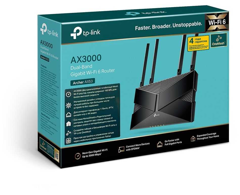 Дополнительная информация : | комплектация: Wi-Fi роутер Archer AX53, адаптер питания, кабель Ethernet RJ45, руководство по быстрой настройке |