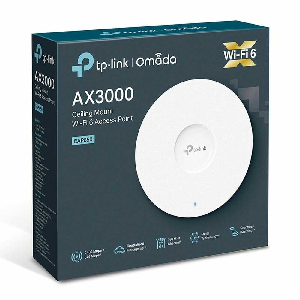 Дополнительная информация : | Точка доступа TP-Link EAP650документациякреплениеблок питания |